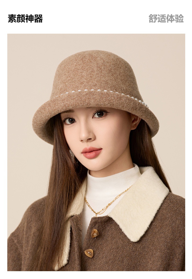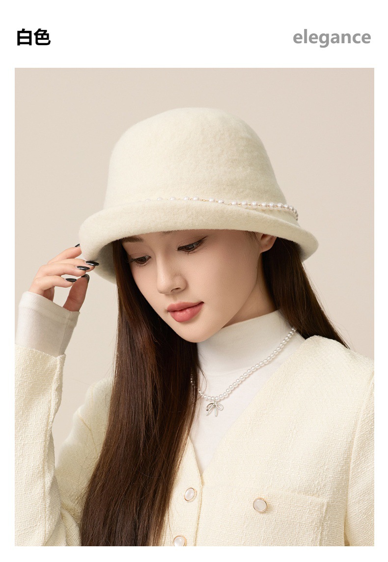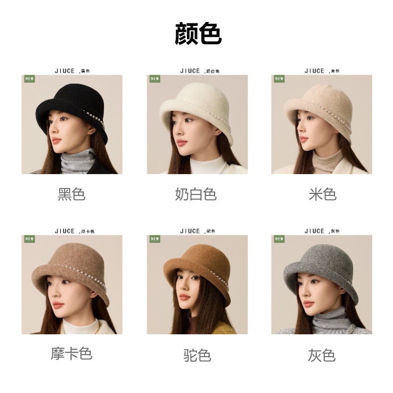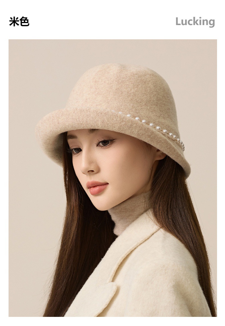 사교계 샤넬 진주 울 탑 모자 프랑스 우아한 돔 기질 분지 모자 가을과 겨울 따뜻한 모자 공장스토어 가기