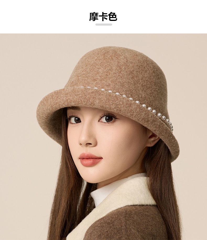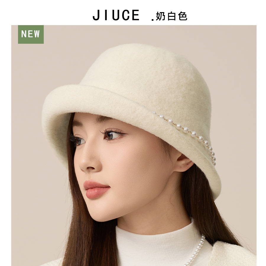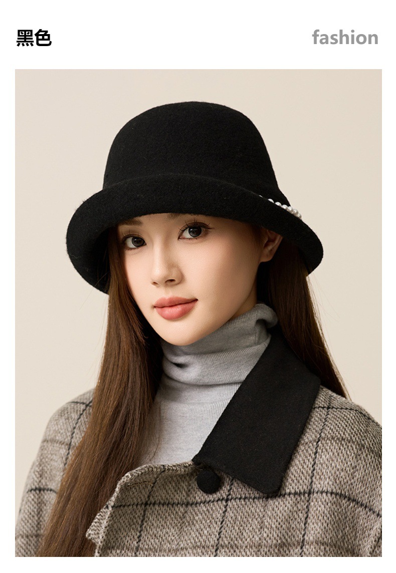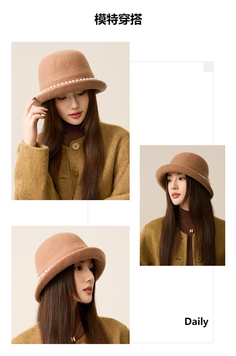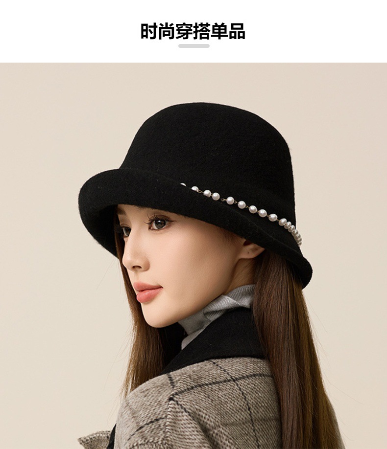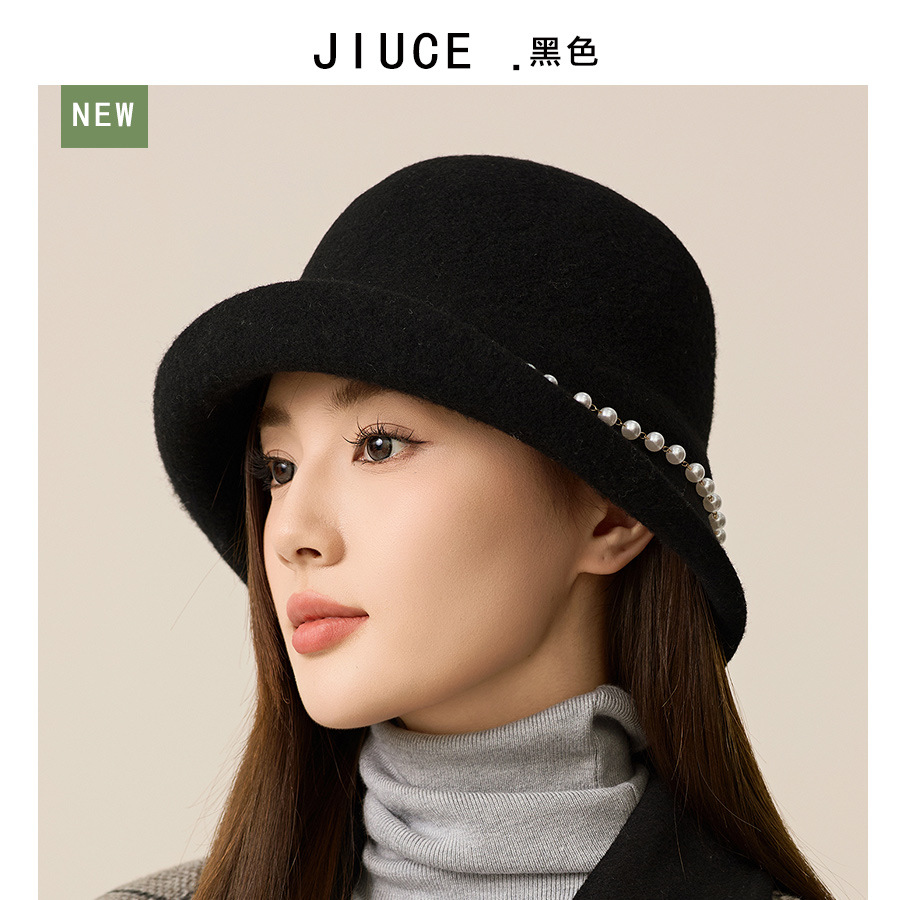 사교계 샤넬 진주 울 탑 모자 프랑스 우아한 돔 기질 분지 모자 가을과 겨울 따뜻한 모자 공장