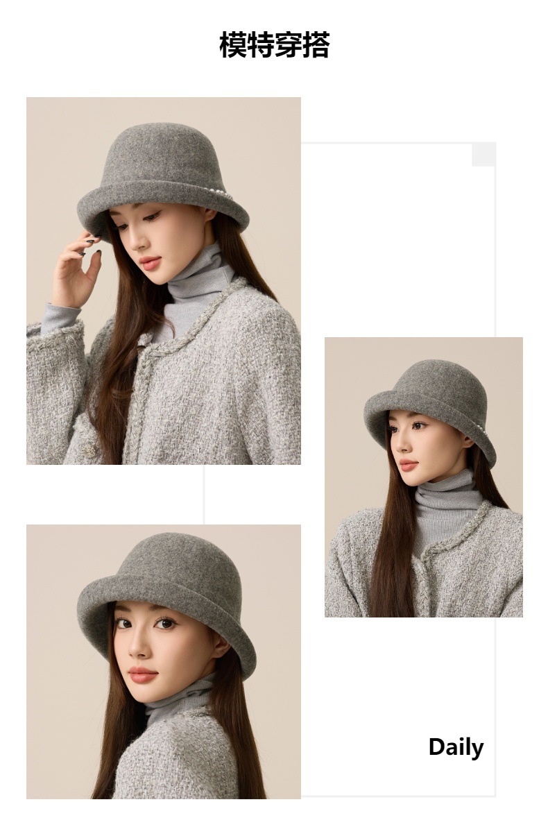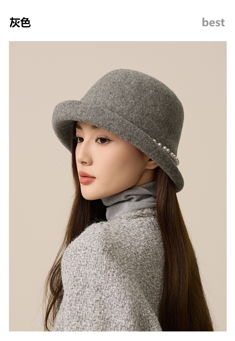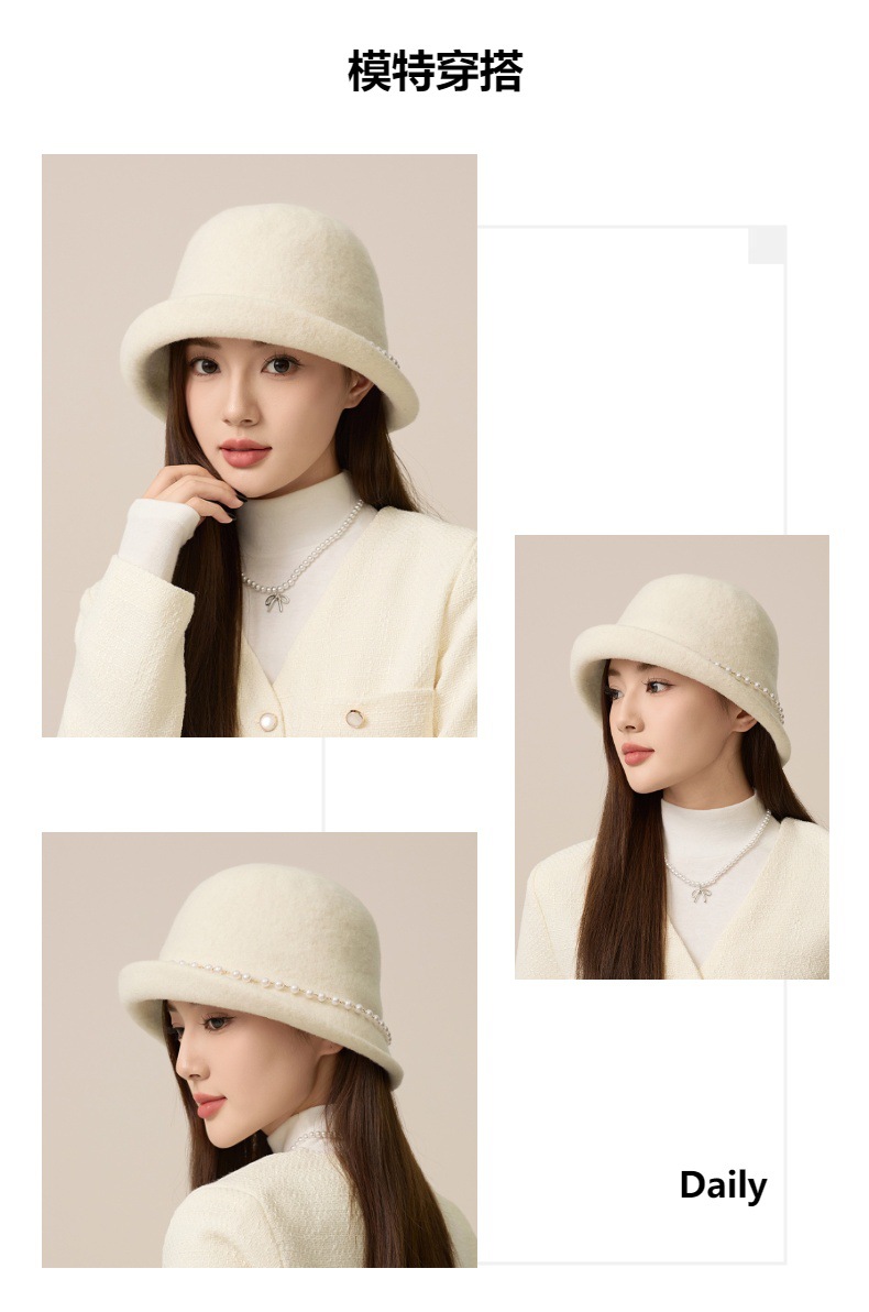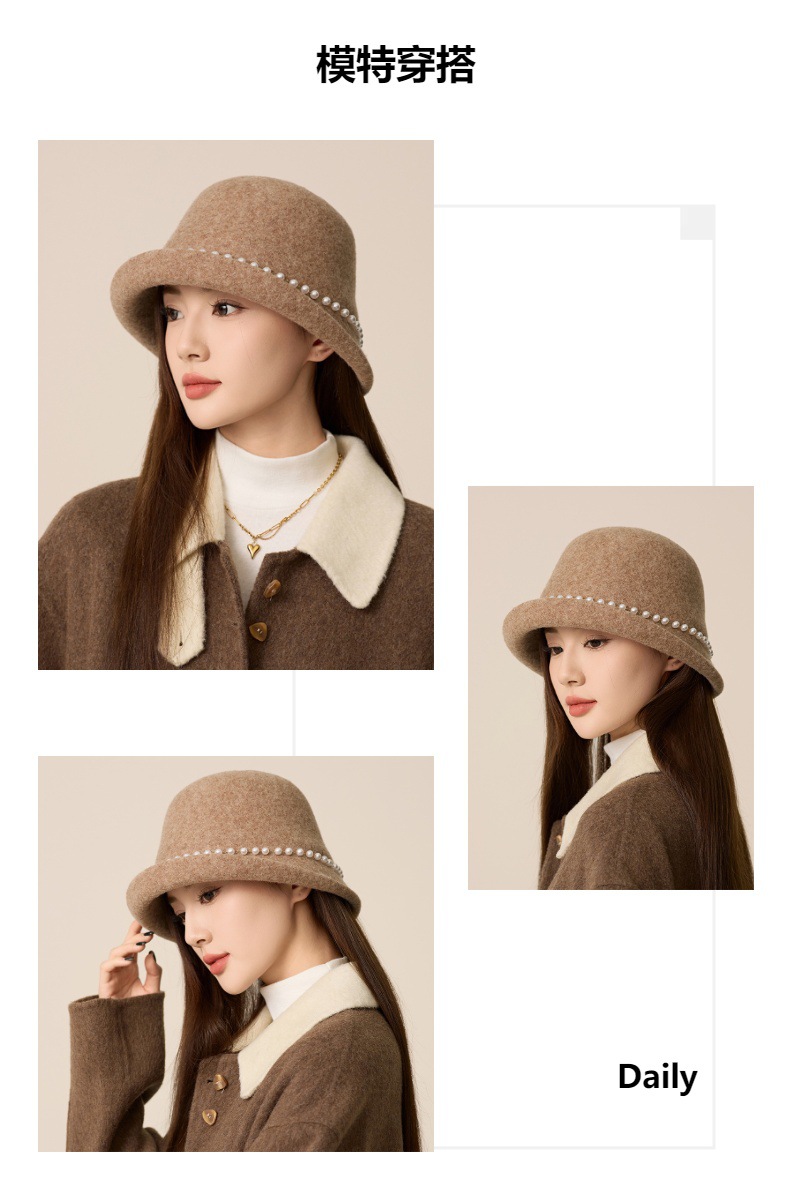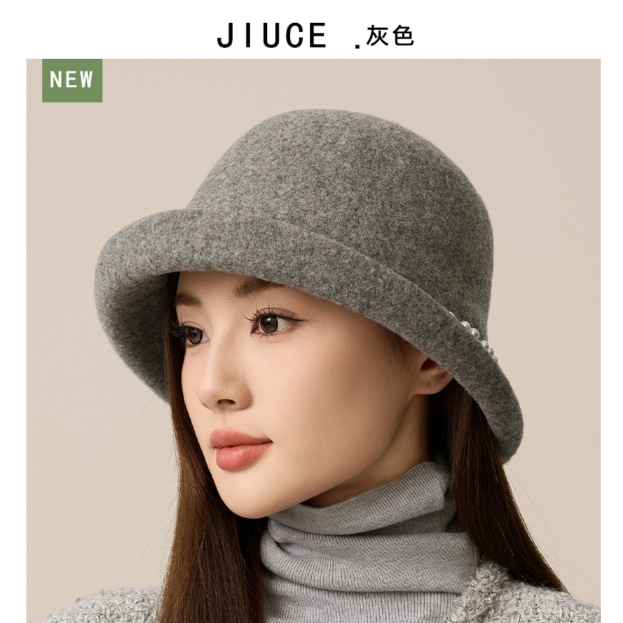 사교계 샤넬 진주 울 탑 모자 프랑스 우아한 돔 기질 분지 모자 가을과 겨울 따뜻한 모자 공장