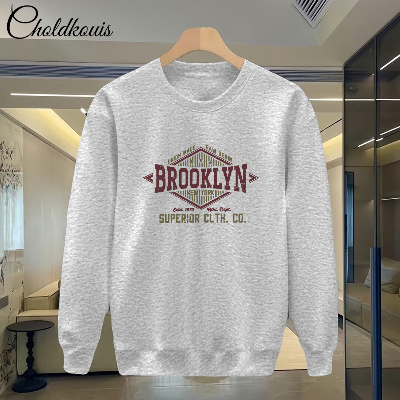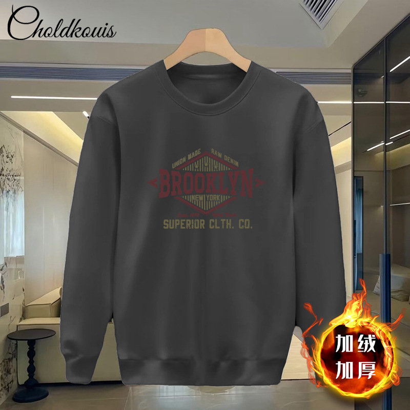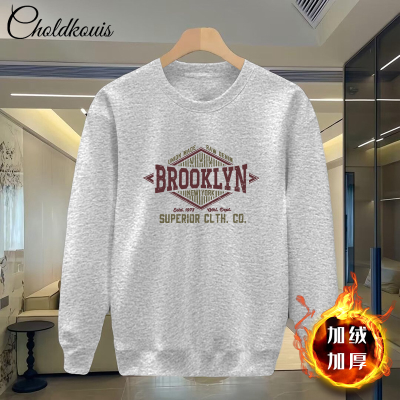 • 오트밀 그레이 라운드넥 스웨트셔츠 플러스 플리스 스타일-265【GL】