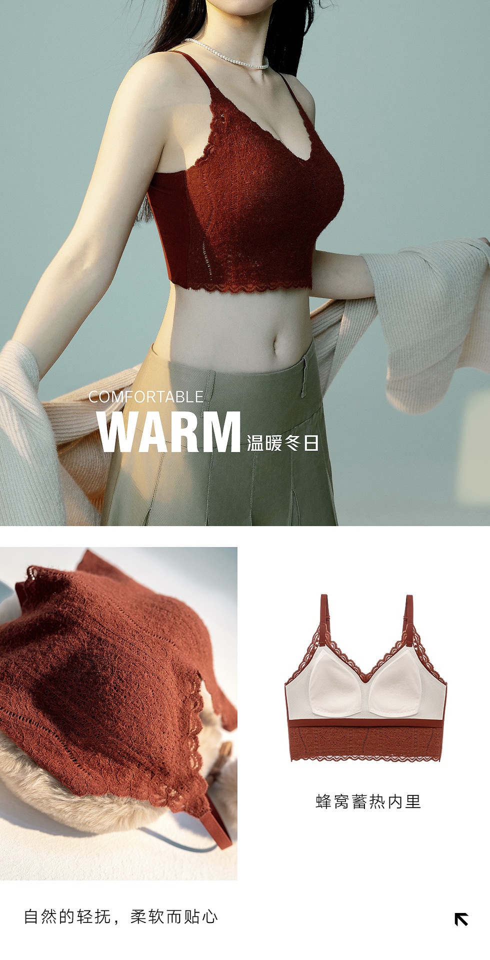 여성용 프렌치 레이스 기모 속옷, 삼각 컵 푸쉬업 처짐 방지, 와이어 프리, 따뜻하고 아름다운 백 조끼 브라스토어 가기