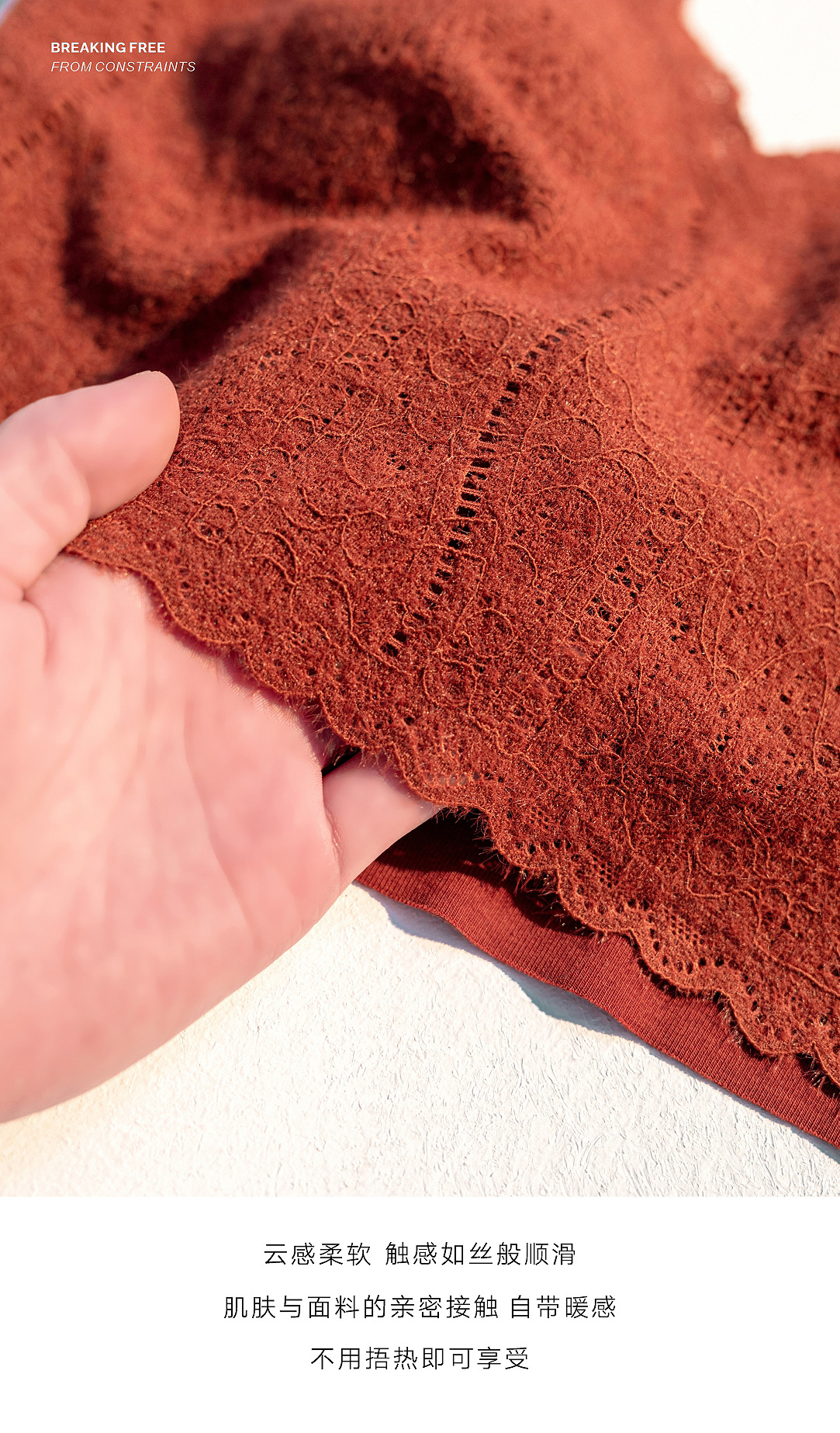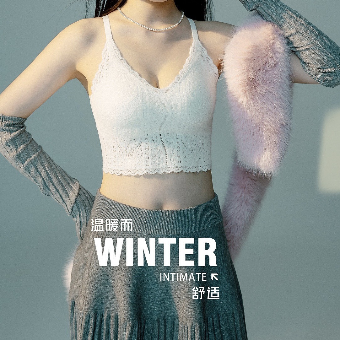여성용 프렌치 레이스 기모 속옷, 삼각 컵 푸쉬업 처짐 방지, 와이어 프리, 따뜻하고 아름다운 백 조끼 브라