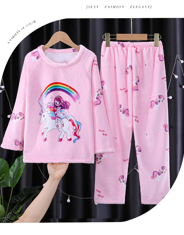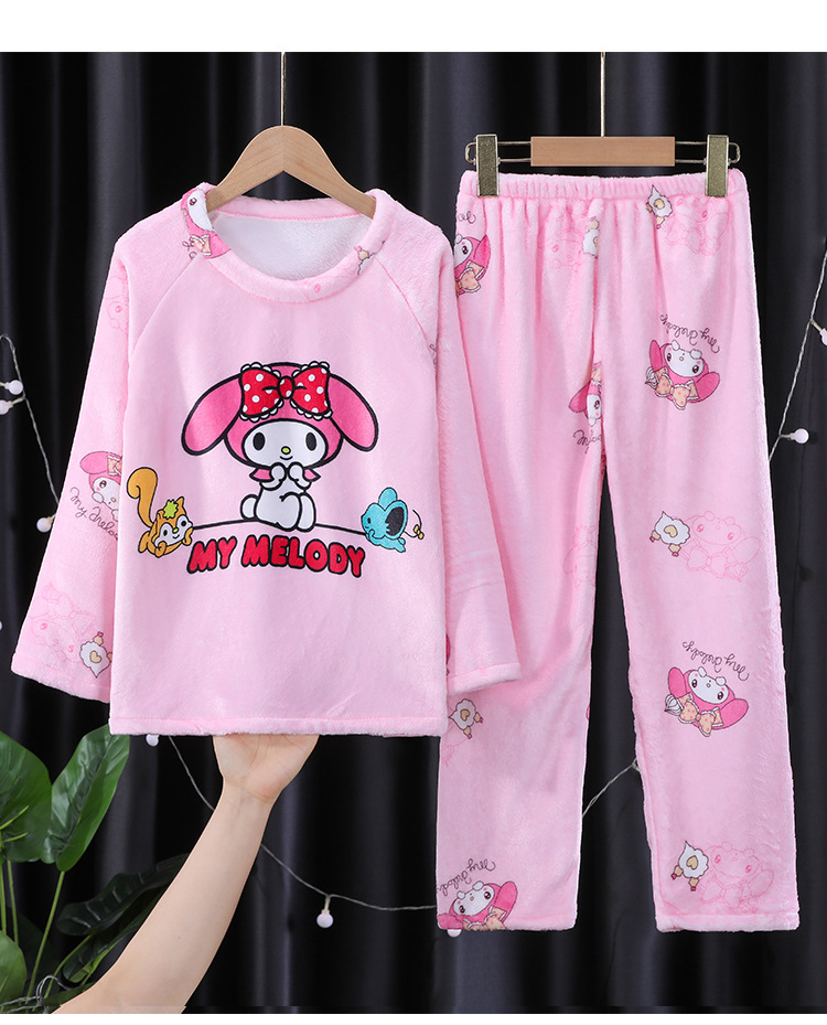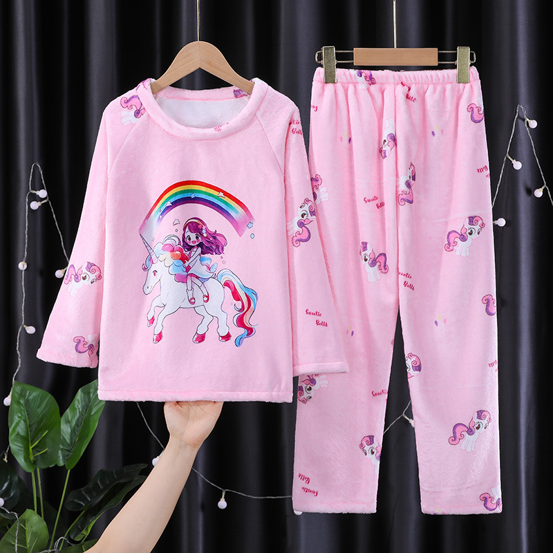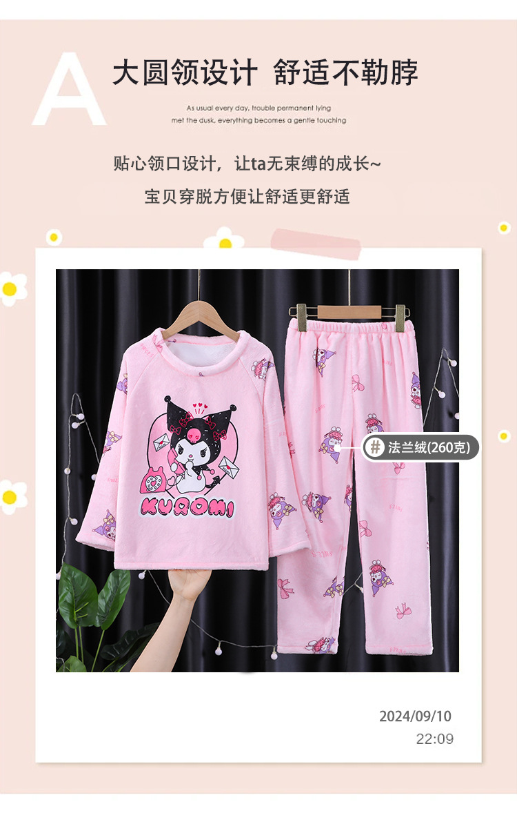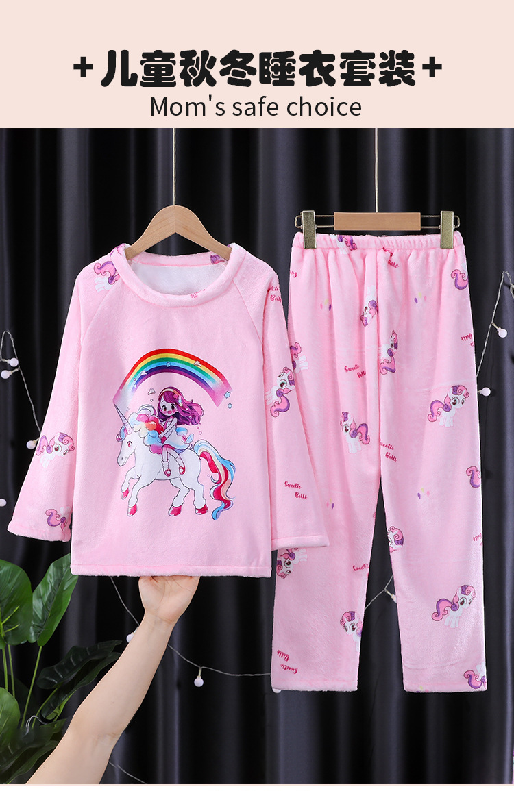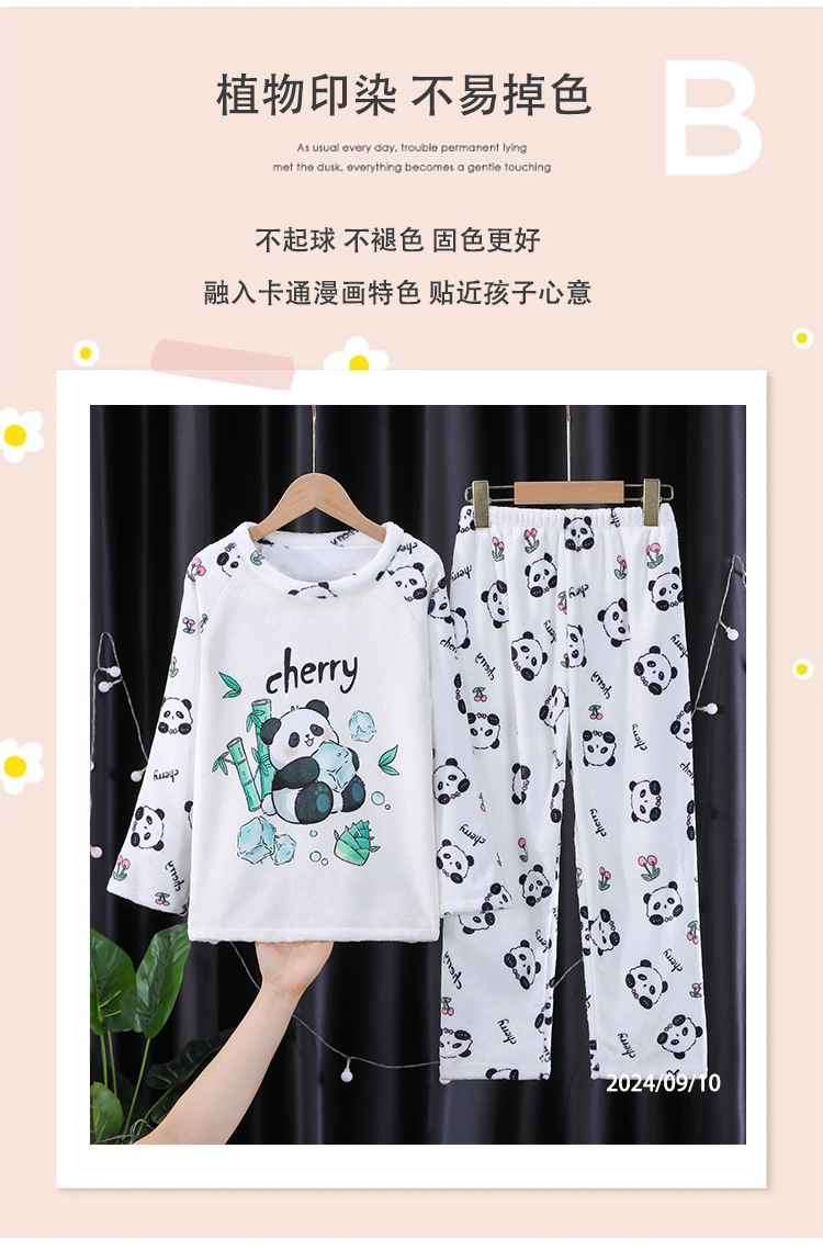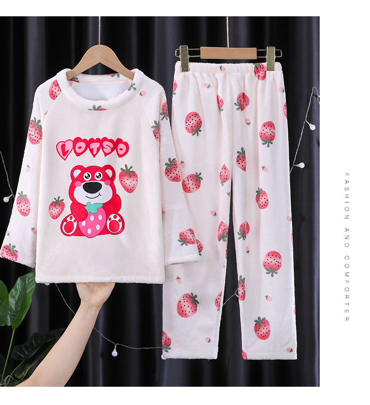 소녀의 산호 양털 2024 가을과 겨울 새로운 만화 귀여운 소녀의 겨울 어린이 플란넬 홈 옷