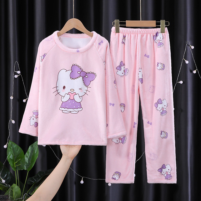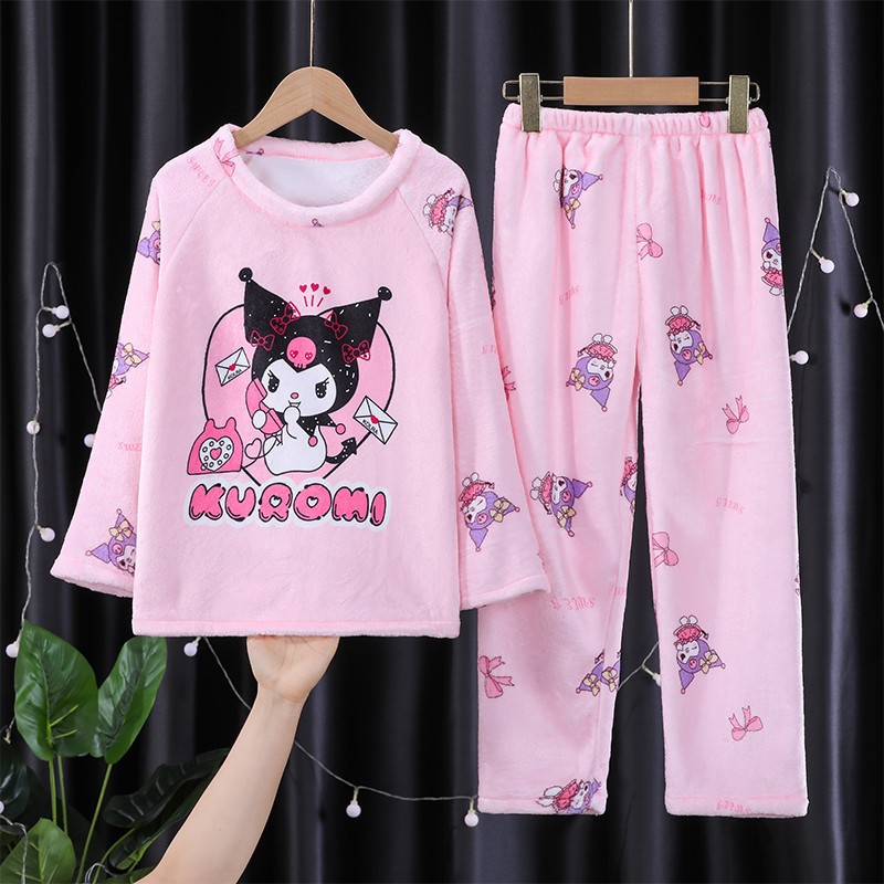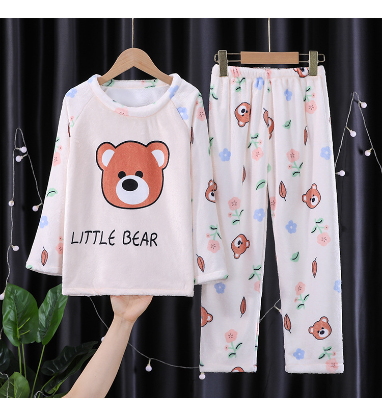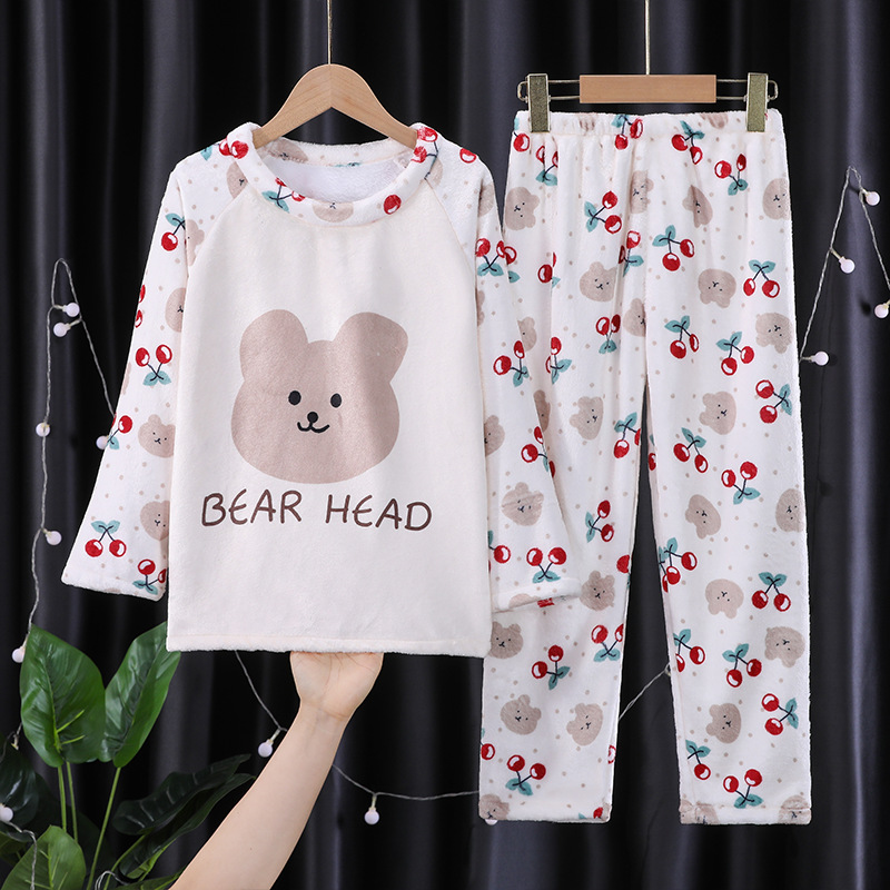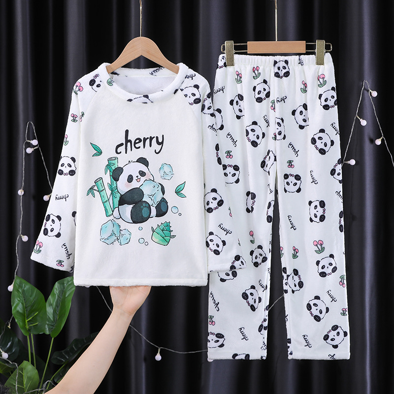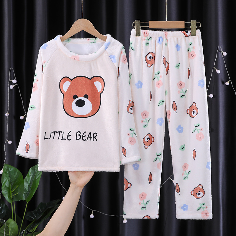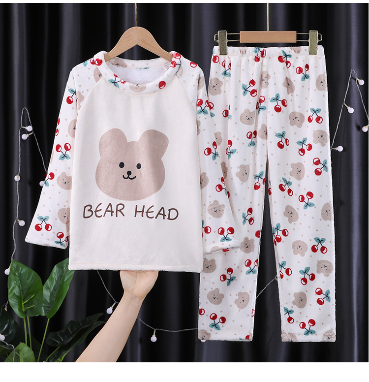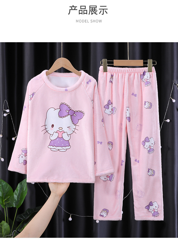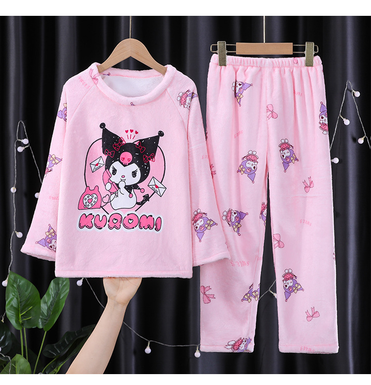 소녀의 산호 양털 2024 가을과 겨울 새로운 만화 귀여운 소녀의 겨울 어린이 플란넬 홈 옷
