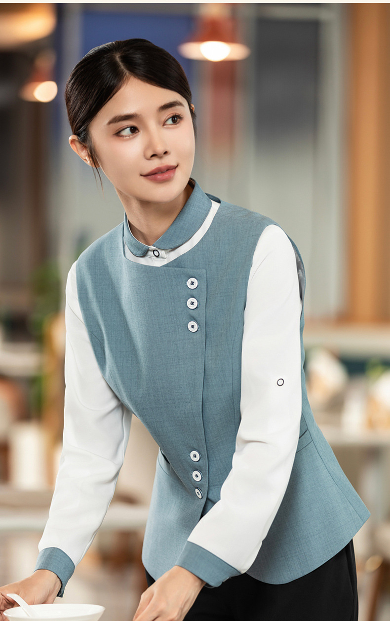 餐厅服务员工作服长袖马甲酒店饭店餐饮烘焙蛋糕奶茶店秋冬茶楼女