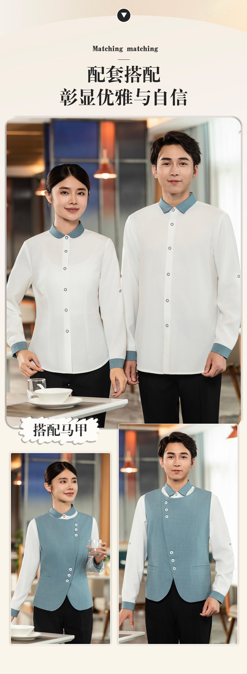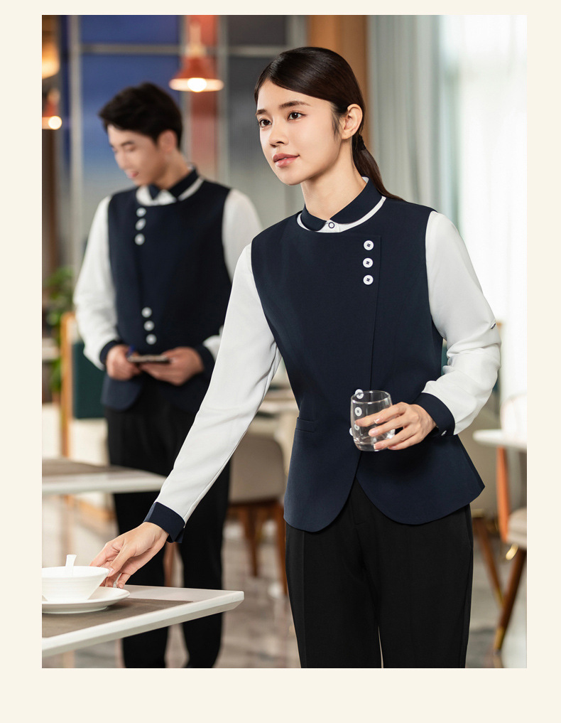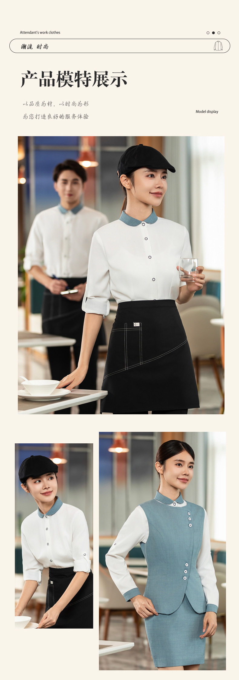 레스토랑 웨이터 작업 옷 긴 소매 조끼 호텔 레스토랑 케이터링 베이킹 케이크 우유 차 가게 가을과 겨울 차 집 여성스토어 가기