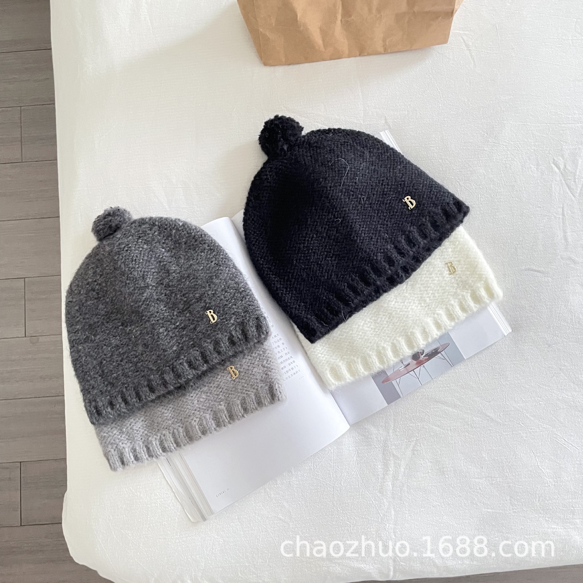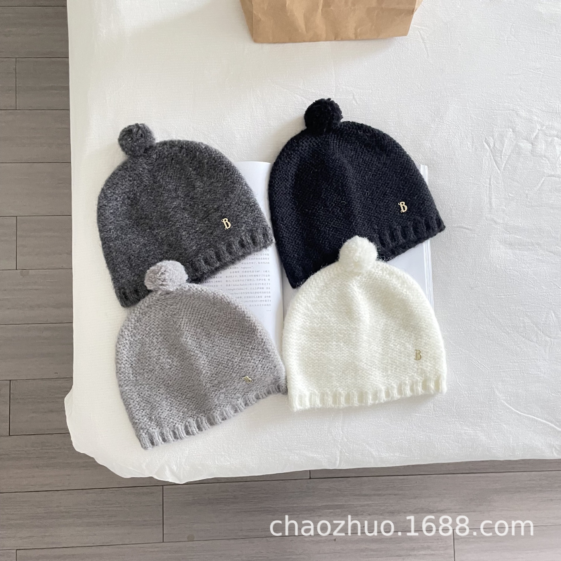 겨울 프렌치 스타일 가을 겨울 B자 니트 볼 모양 모직 모자 어린이 풀오버 모자