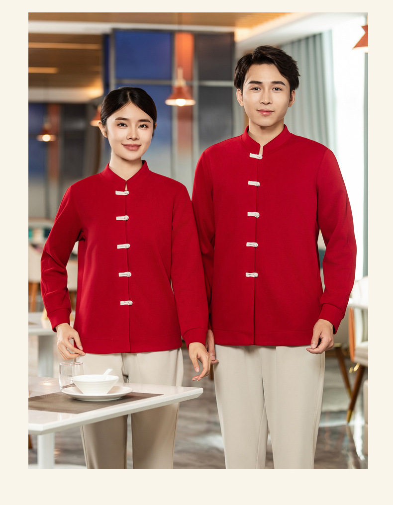 케이터링 웨이터 오버볼 긴 소매 버클 레스토랑 중국 특별 냄비 레스토랑 티 하우스 가을과 겨울 스웨터 커피