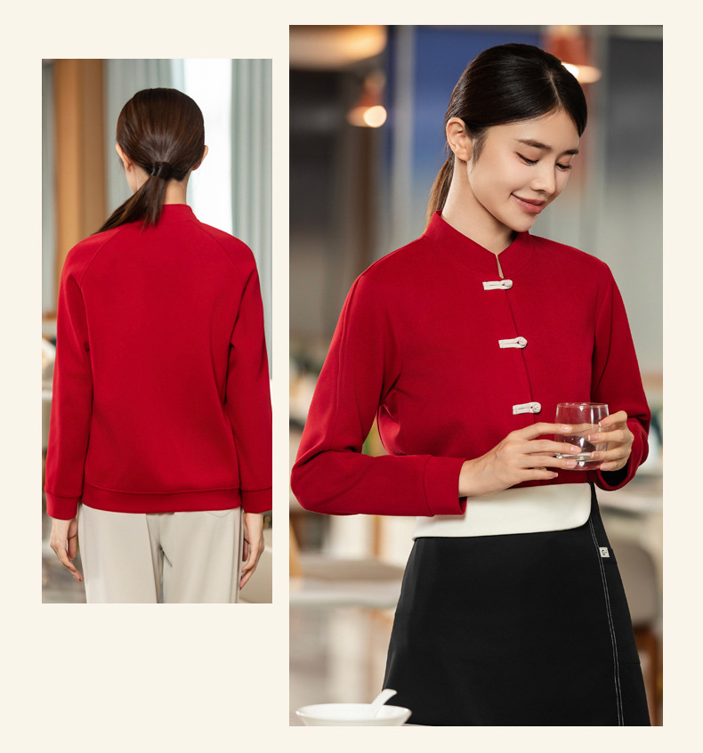 케이터링 웨이터 오버볼 긴 소매 버클 레스토랑 중국 특별 냄비 레스토랑 티 하우스 가을과 겨울 스웨터 커피스토어 가기