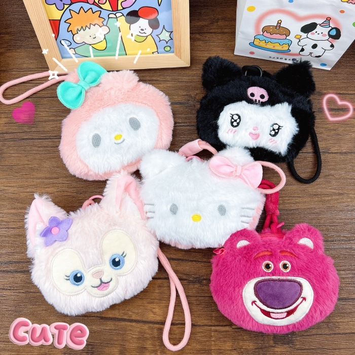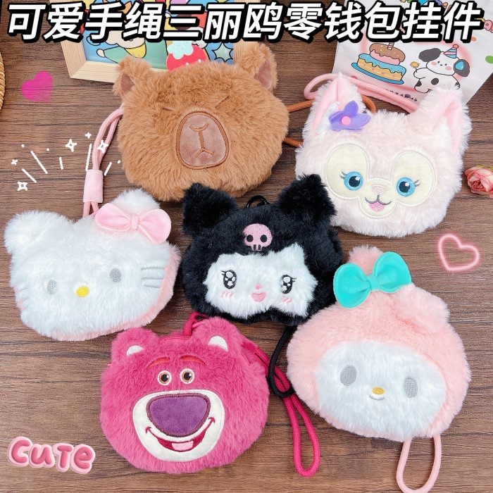 귀여운 Sanlio Kulomi 동전 지갑 딸기 곰 Kabi Bala 손 로프 동전 지갑 키 체인 펜던트 도매
