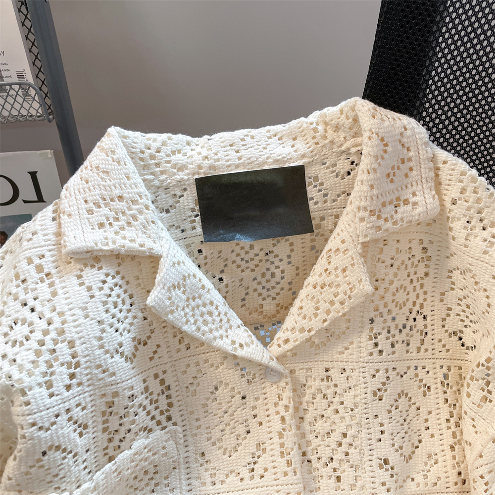 디자인 센스 틈새 세련된 할로우 썬 스크린 긴팔 셔츠 남성과 여성의 여름 느슨한 홍콩 스타일 아메리칸 스타일 하이 엔드 탑 재킷