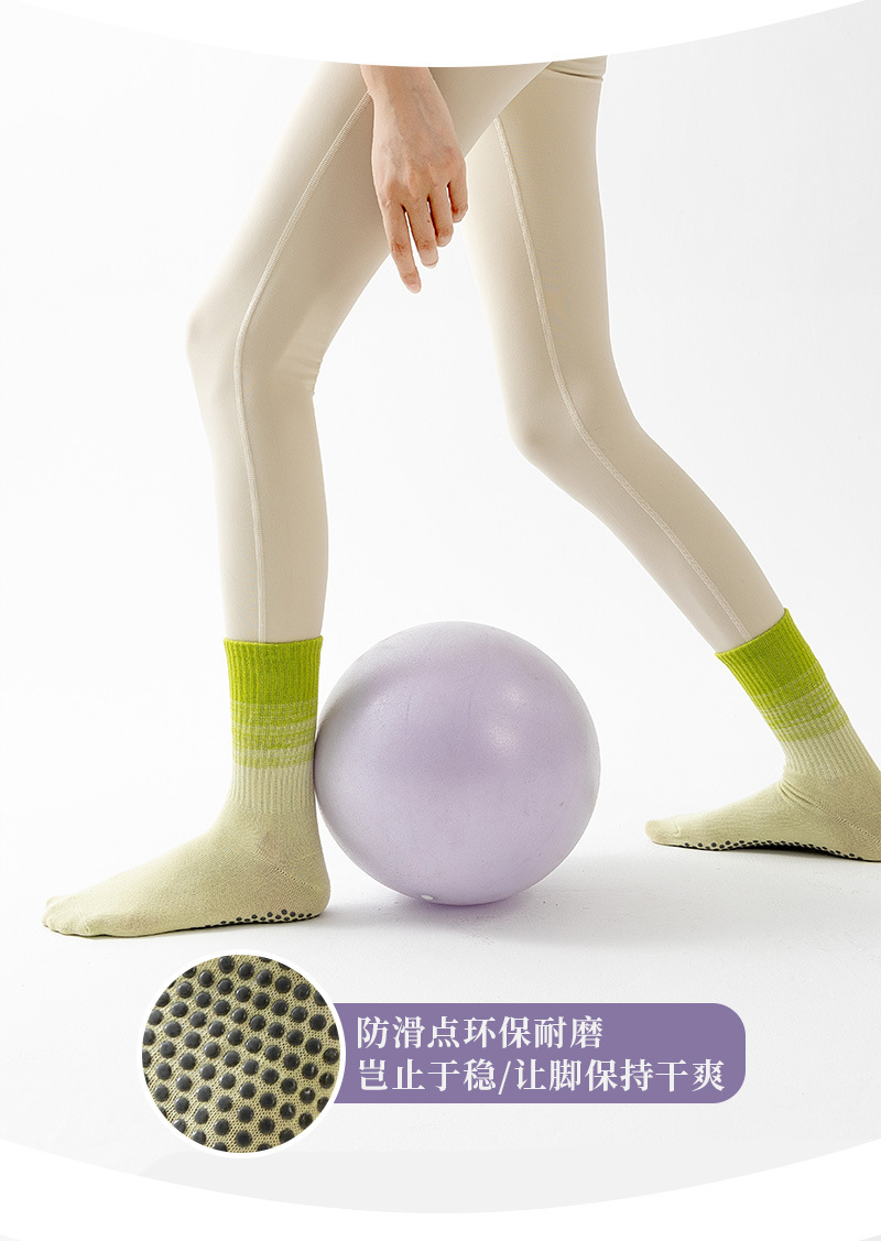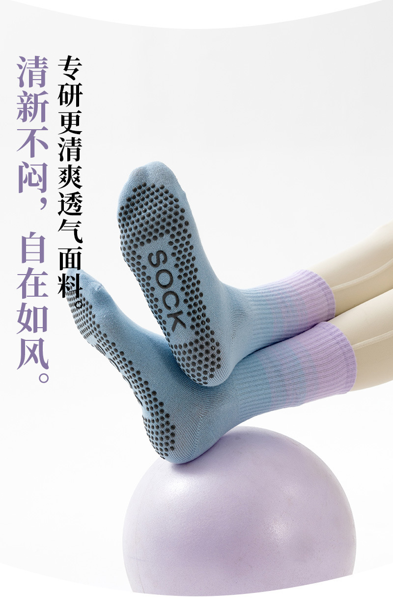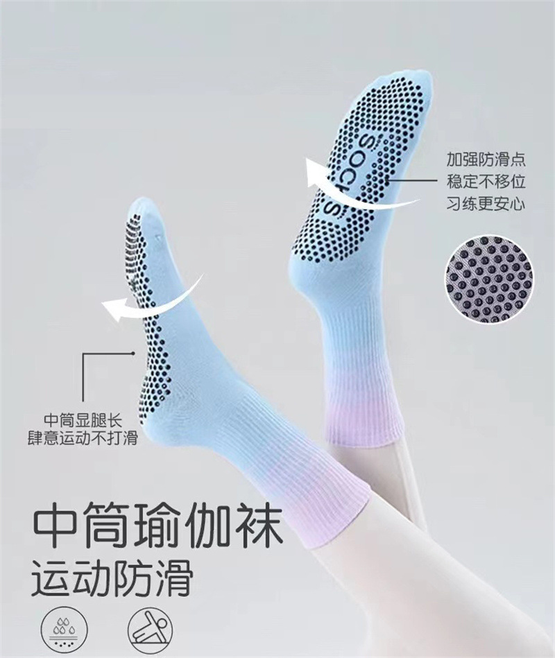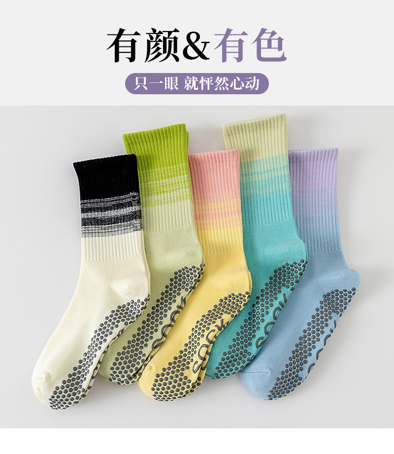 봄과 가을 중간 길이 그라데이션 색상 미끄럼 방지 요가 양말 컬러풀한 양말 편안하고 내구성 있는 실리콘 미끄럼 방지 바닥 피트니스 양말스토어 가기