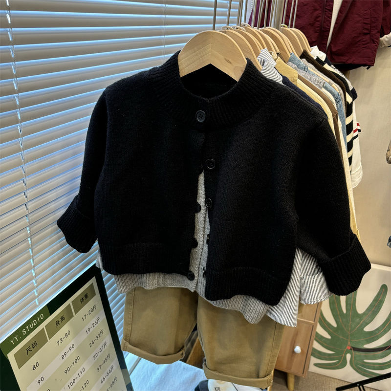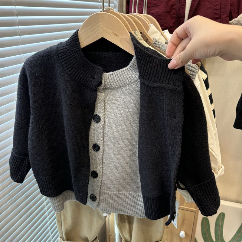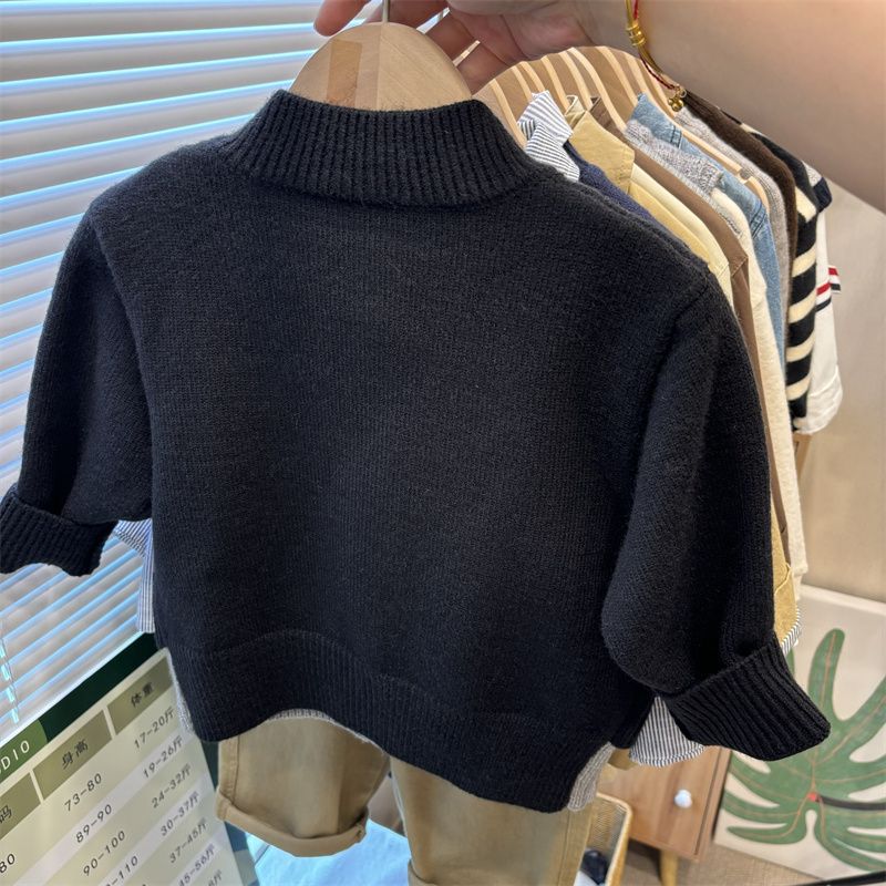 즉시 배송! 2024 가을 남아용 한국 스타일 니트 스웨터 상의 남녀 아기용 페이크 투피스 스웨터