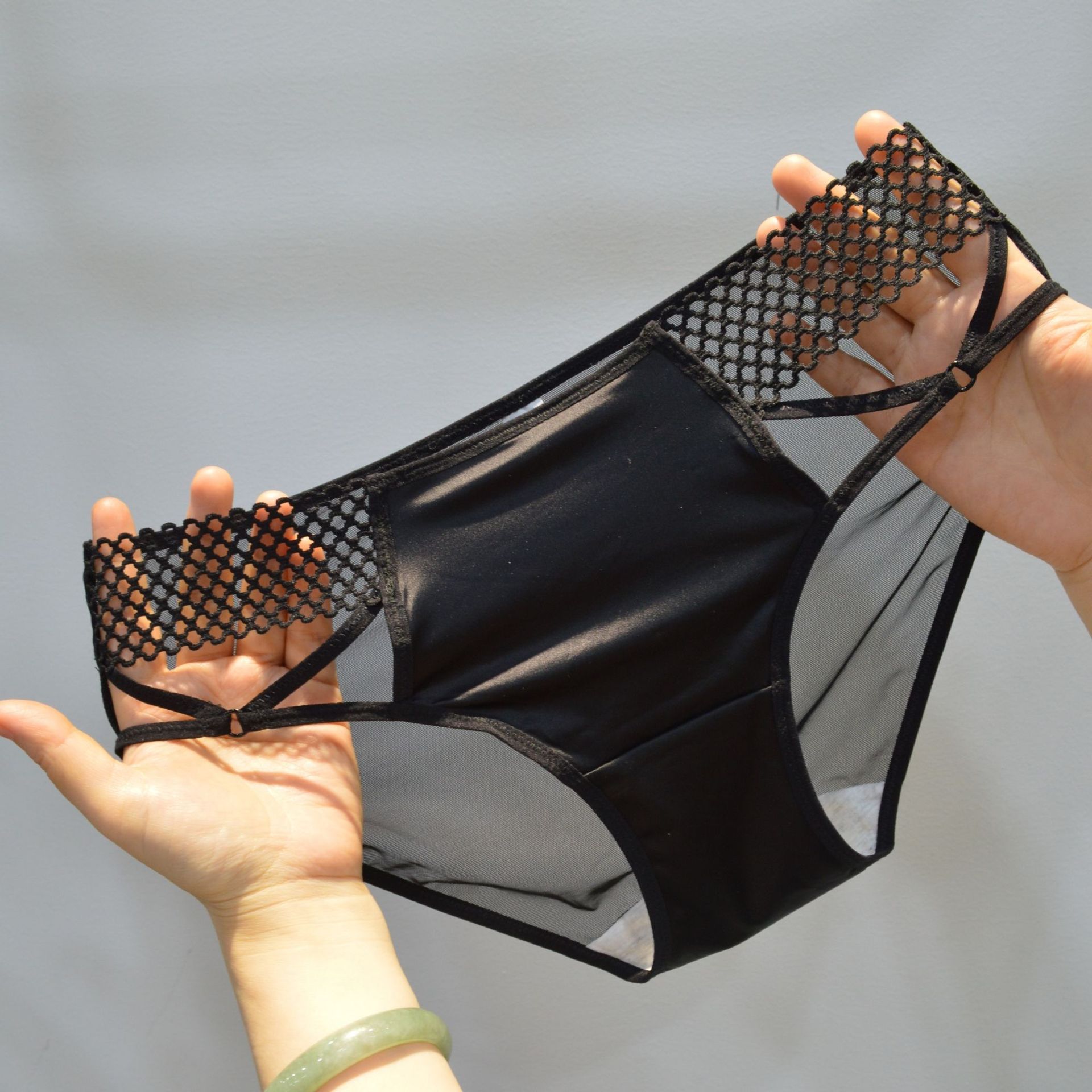 클리어 메쉬 속옷 달콤한 패션 여자 섹시 할로우 레이스 미드 허리 여성 속옷 통기성 메쉬 낚시 그물