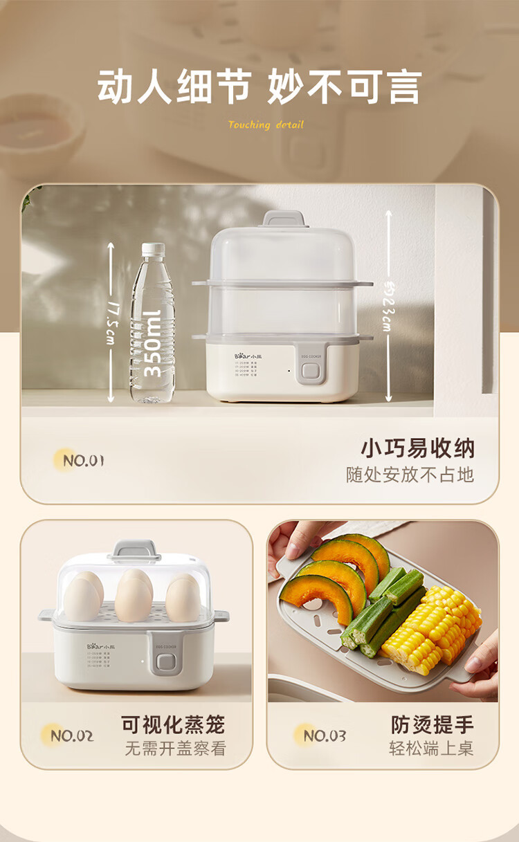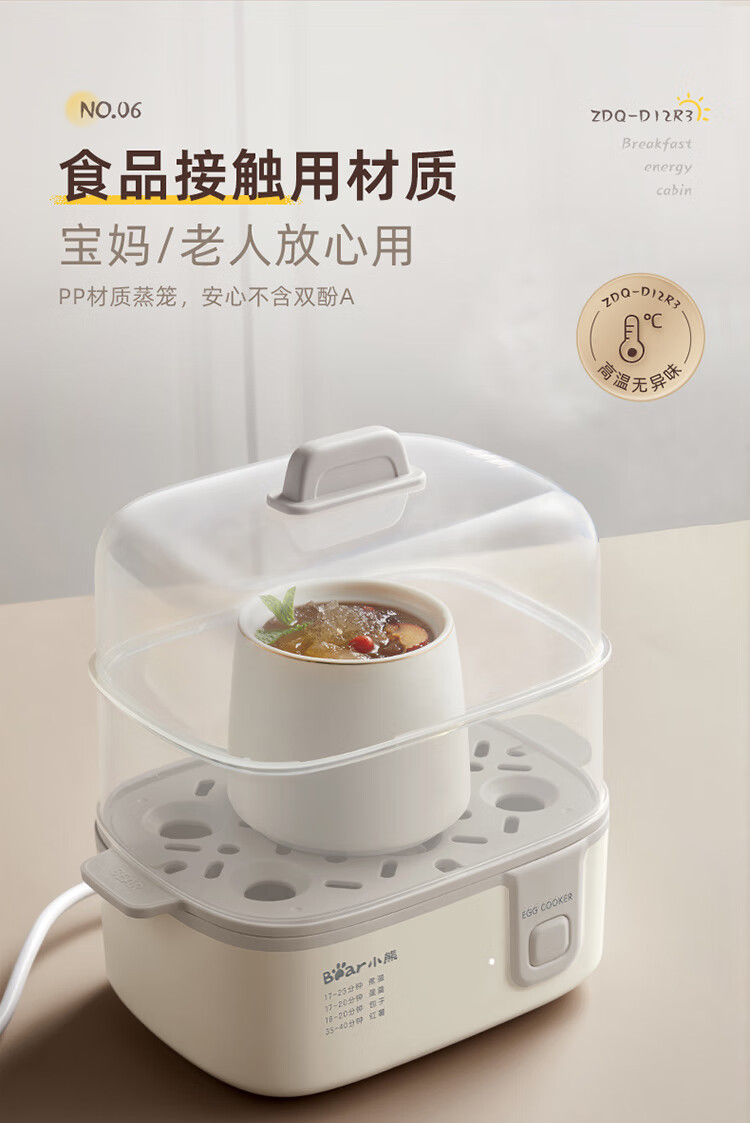 곰 계란 기선 ZDQ-D12R3 가정용 계란 보일러 다기능 이중층 작은 찐 계란 수프 비자동 전원 끄기