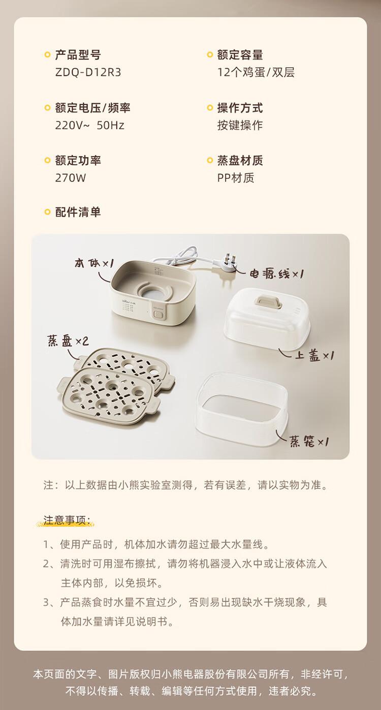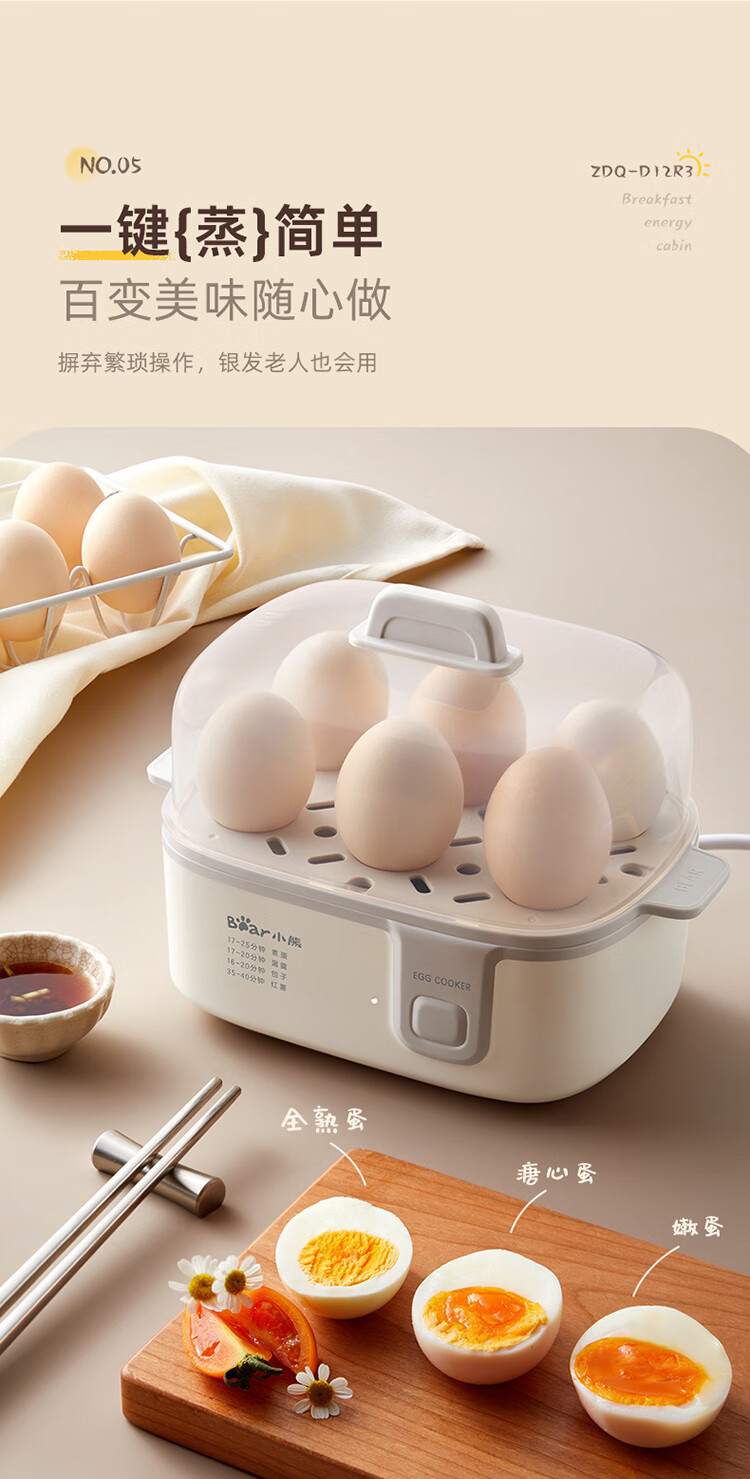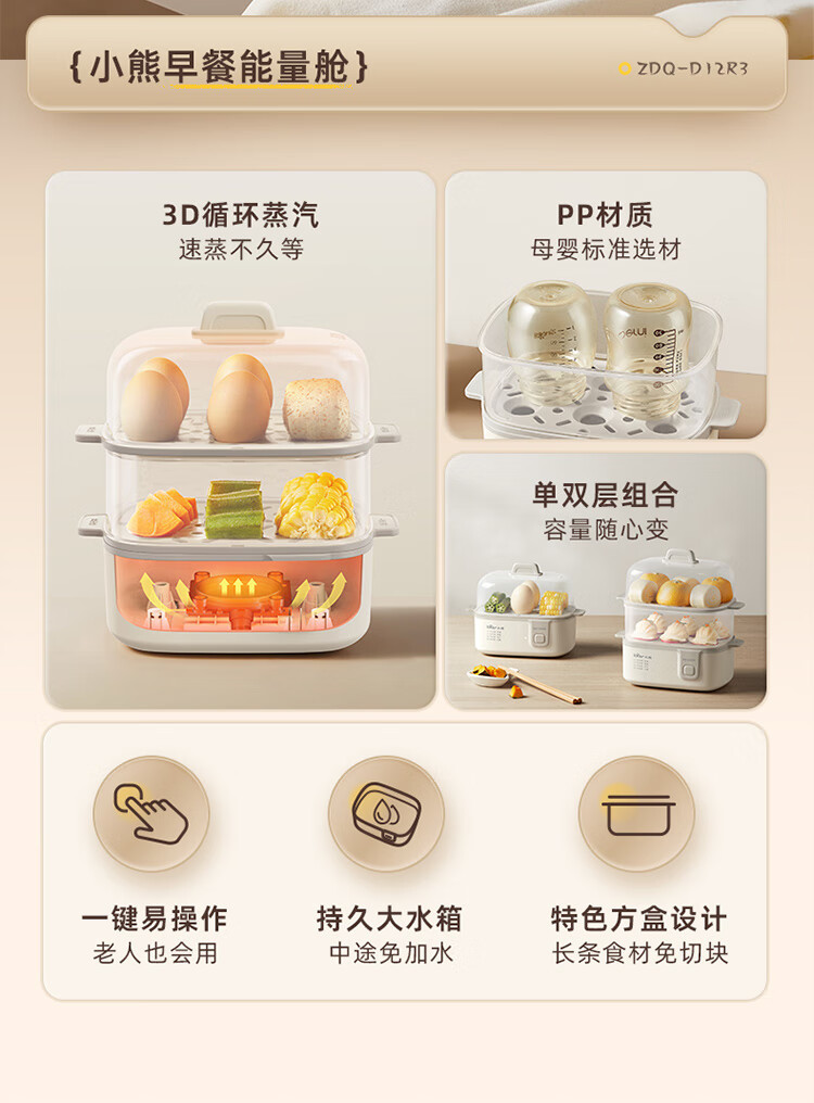 곰 계란 기선 ZDQ-D12R3 가정용 계란 보일러 다기능 이중층 작은 찐 계란 수프 비자동 전원 끄기스토어 가기