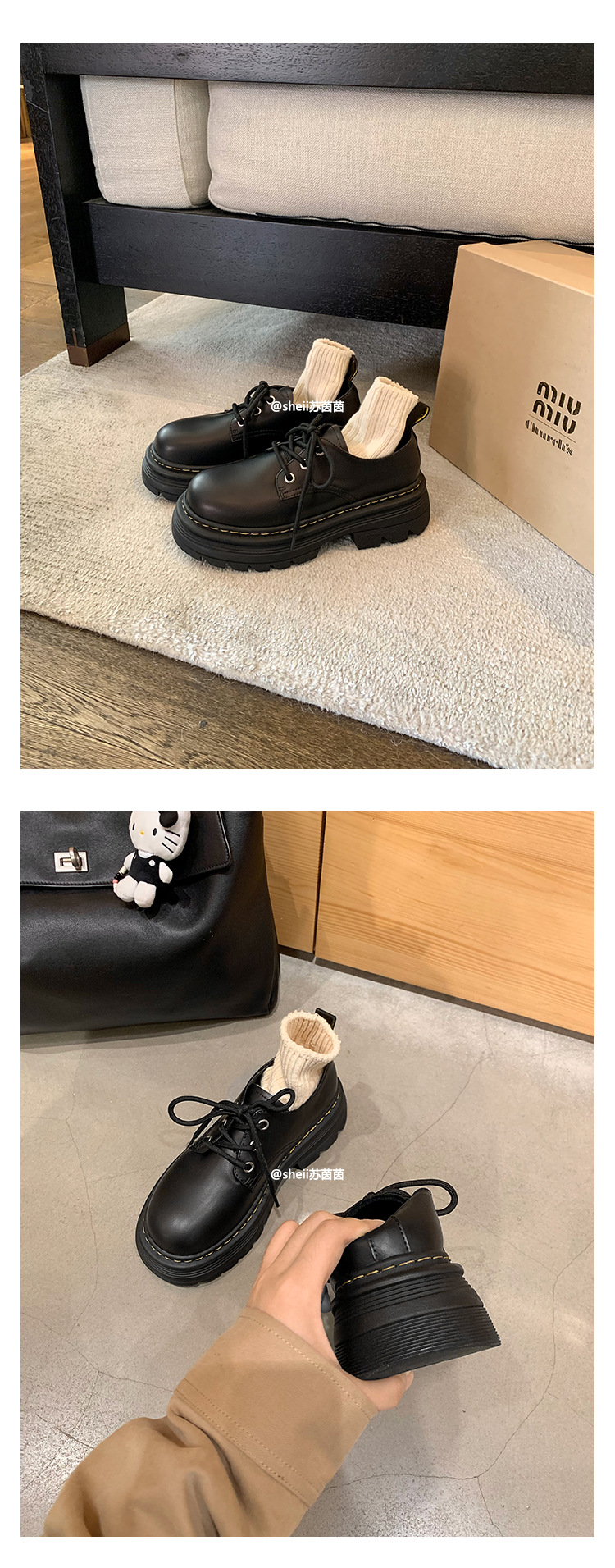 [포도엄마와 같은 스타일] 스몰 마틴~ 레이스업 두꺼운 밑창 키높이 캐주얼 드리비 슈즈 여성 로퍼