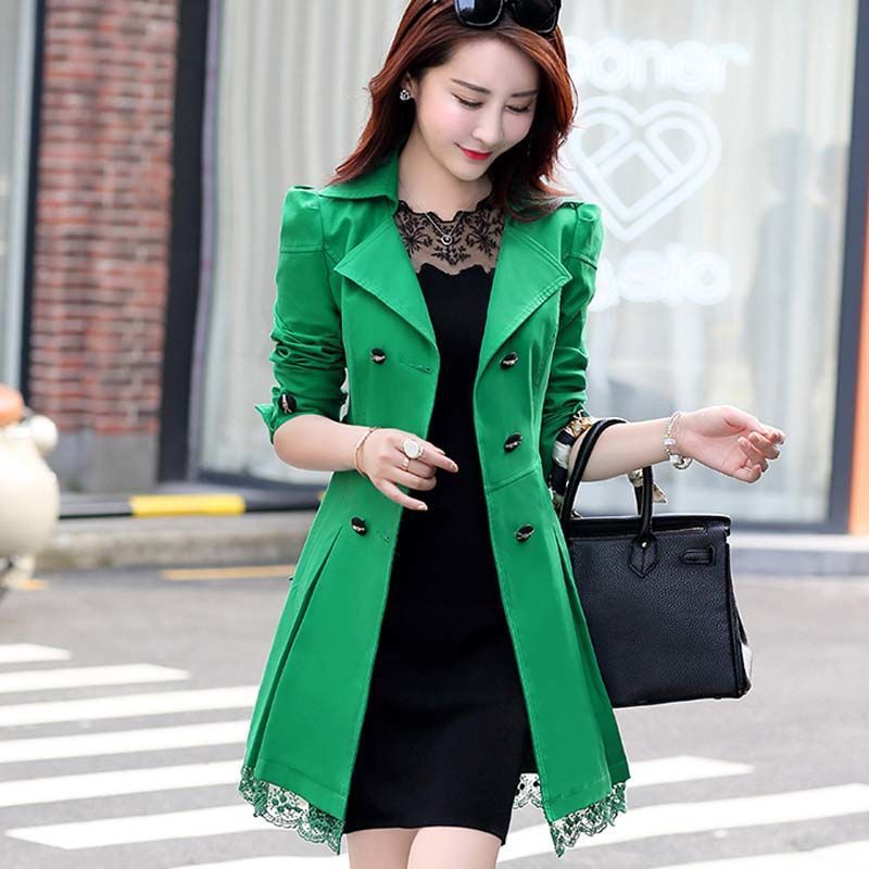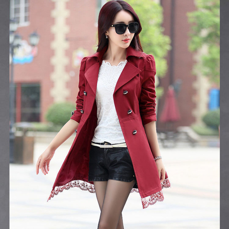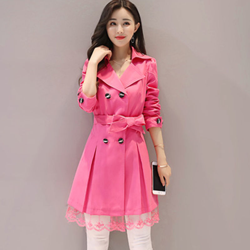 봄과 가을 새로운 도착 윈드 브레이커 여성 중간 길이의 한국 스타일 캐주얼 슬림-더블 브레스트 영국 스타일 트렌디 코트