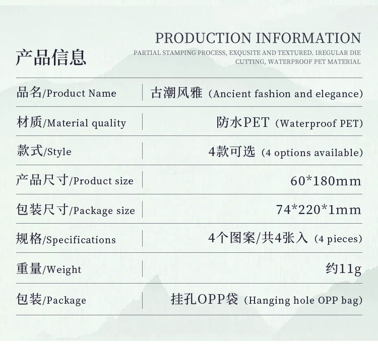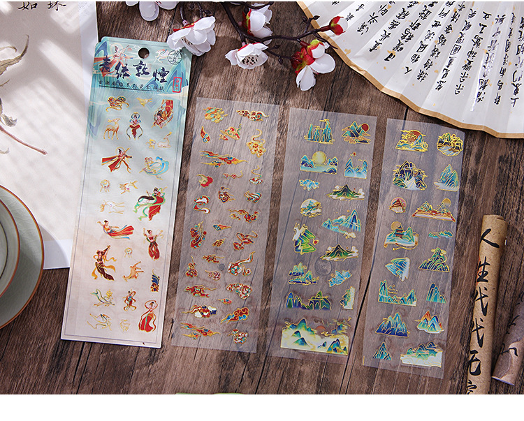 Yuezhen 고대 조수 우아한 중국 스타일 골동품 손 계정 스티커 패키지 국경 컷 필름 애완 동물 스티커 손 계정 재료 스티커