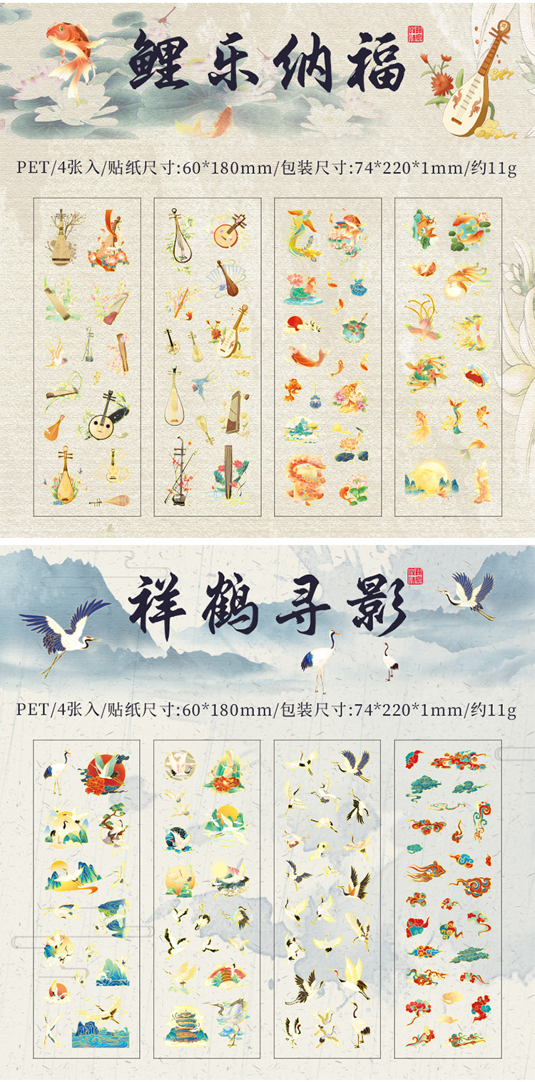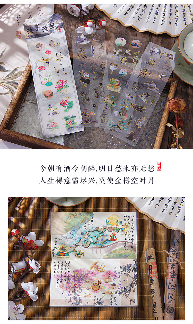 Yuezhen 고대 조수 우아한 중국 스타일 골동품 손 계정 스티커 패키지 국경 컷 필름 애완 동물 스티커 손 계정 재료 스티커스토어 가기