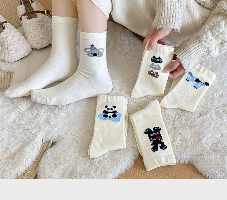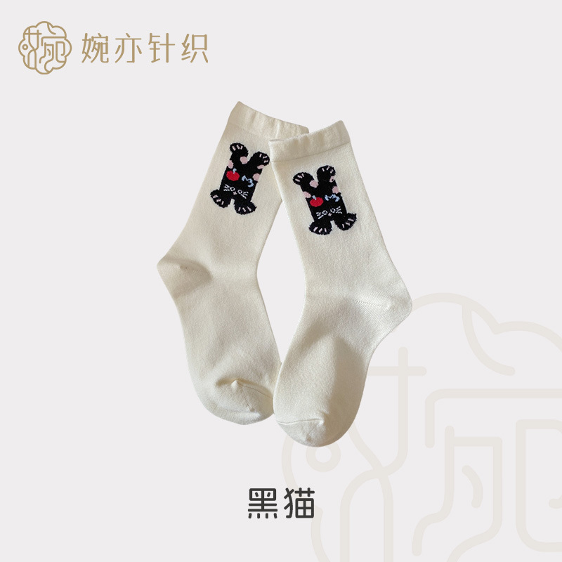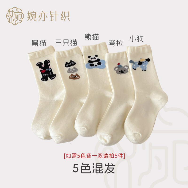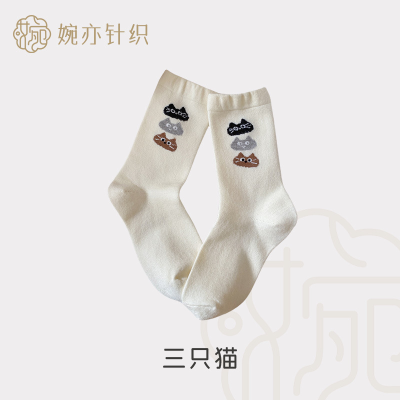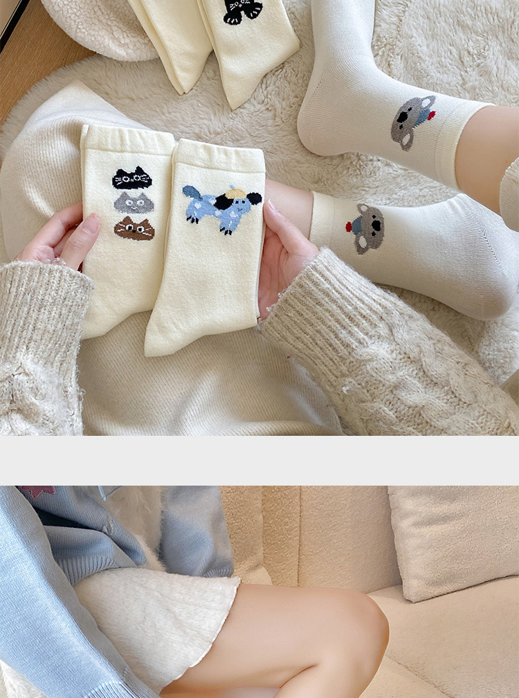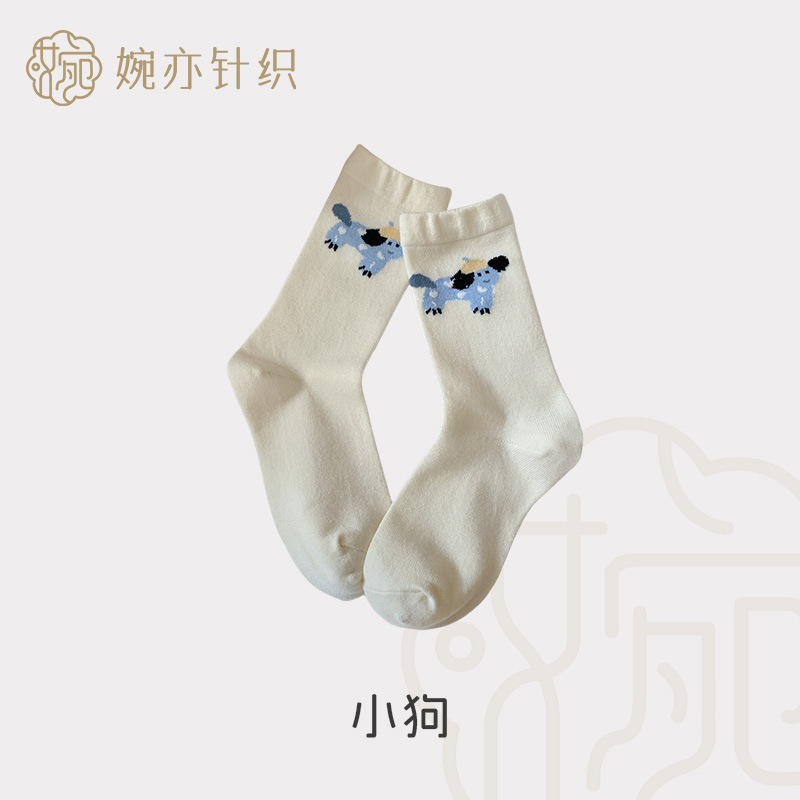 캐시미어 강아지 양말 여성의 가을과 겨울 두꺼운 따뜻한 일본 스타일 Ins 트렌디 한 달콤한 울 양말 귀여운 만화 미드 튜브 양말스토어 가기