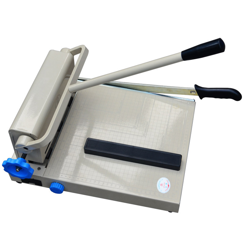 手动带打孔切纸刀采用手动机械力臂压入式打孔,切纸系自动压纸裁切;结构精巧,使用方便可靠;底盘采用模具一次性成型;准确美观,切纸刻度分A4,B5, A5,B6,B7,且刻度线耐磨.打孔刀系优质合金材料经特殊工艺加工而成,刀口锋利耐用,使打孔无毛刺,无飞边;装订简单美观. 330*300(A4) 重量 12.5kg