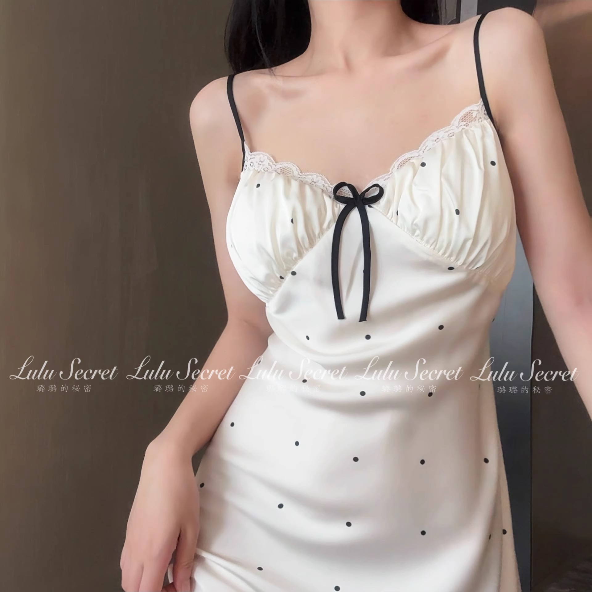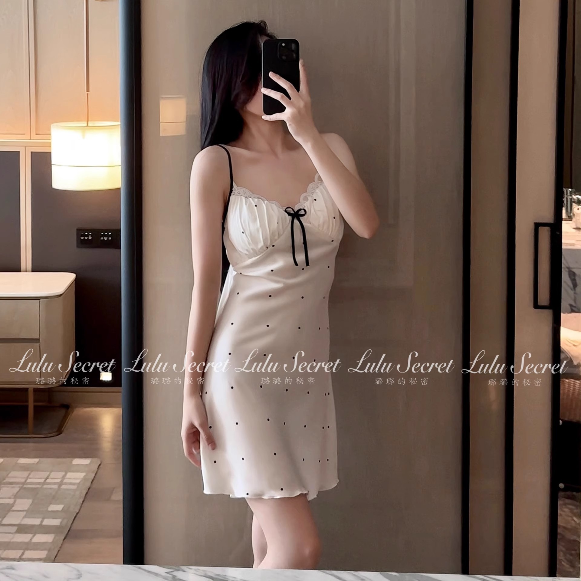 • 단조 실크 잠옷 - 우유 물방울 무늬