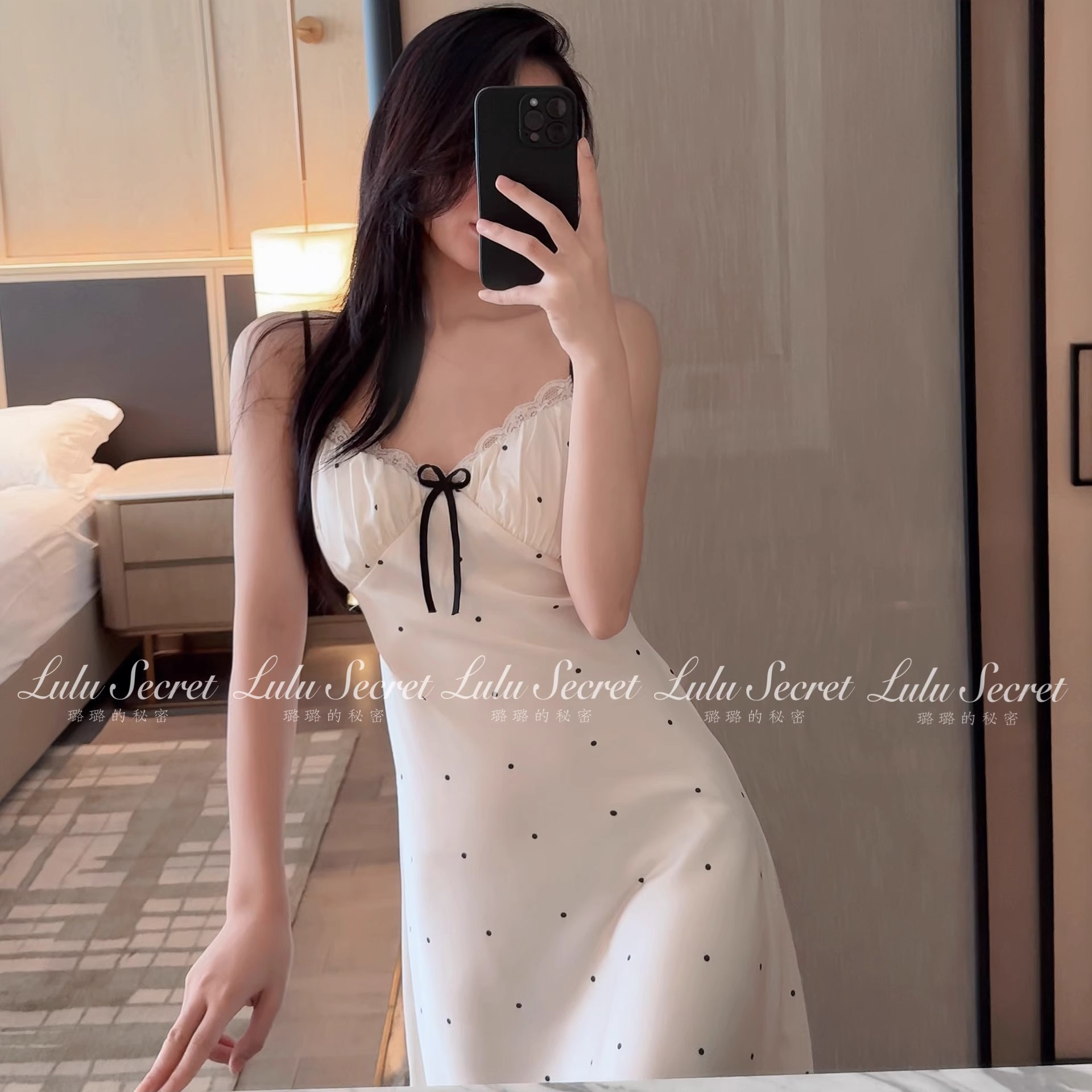 섹시한 잠옷 여성용 아이스 리본 가슴 패드 인쇄 순수한 욕망 실크 얇은 슬링 나이트 가운 홈 의류 크로스 테두리스토어 가기