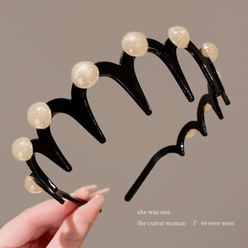 진주 웨이브 헤어 후프 여성의 2024 새로운 스타일 페이스 워시 푹신한 질감 칫솔질 빗 미끄럼 방지 헤드 후프 고급 센스 헤어 카드