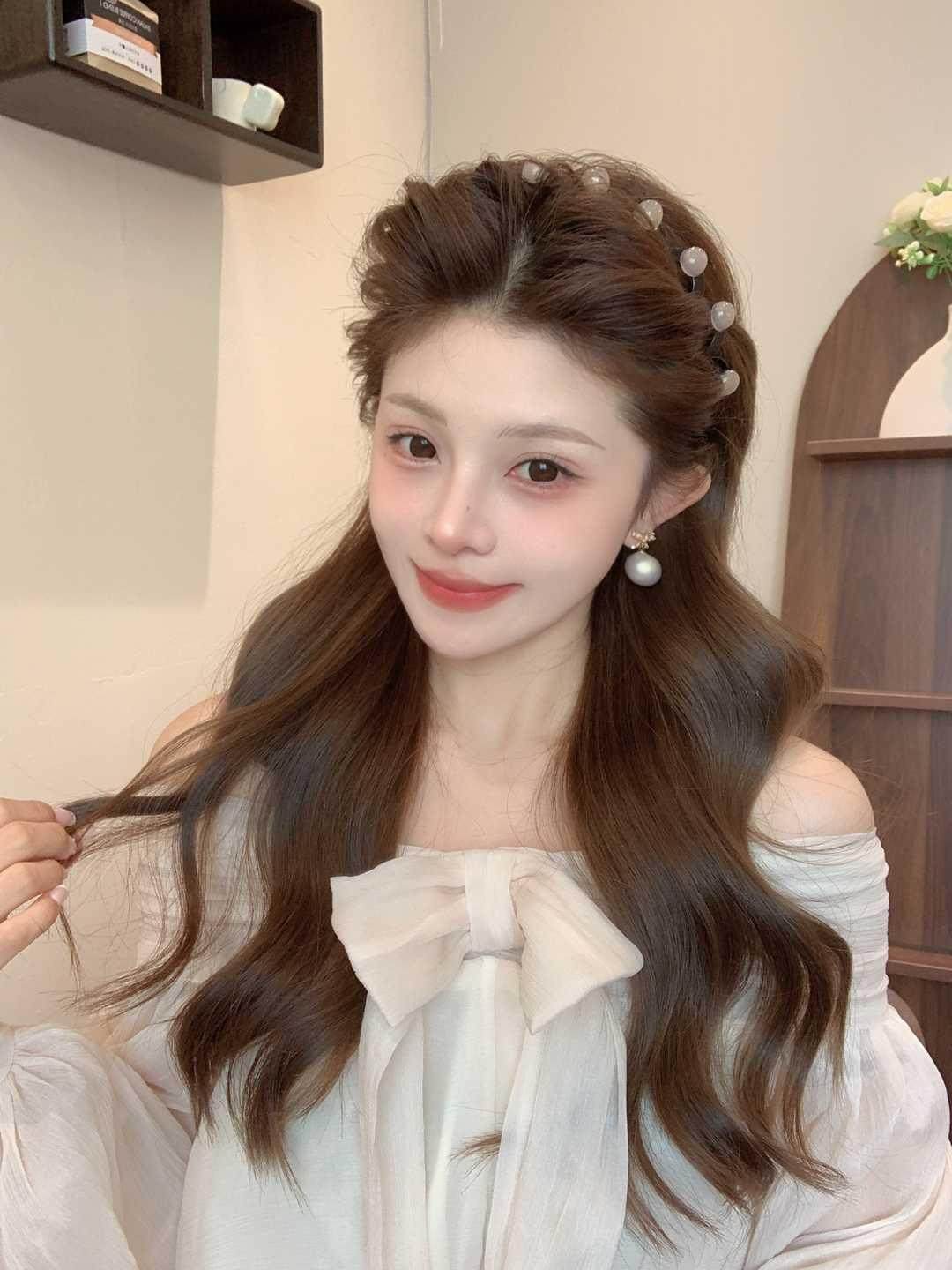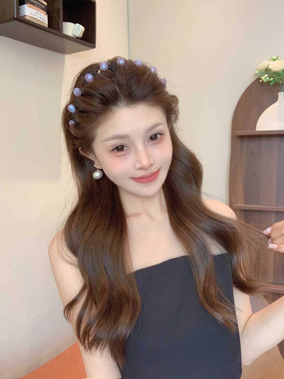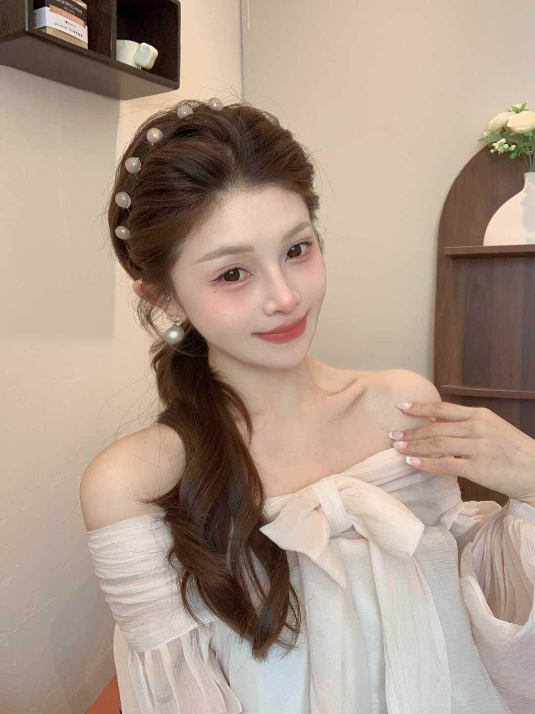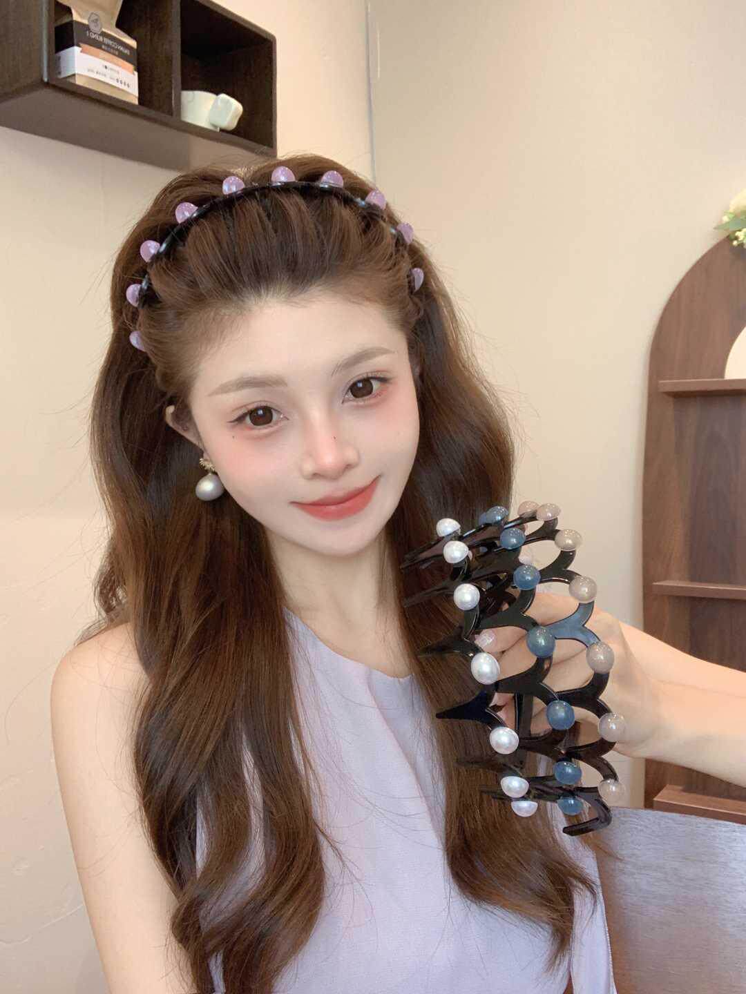 진주 웨이브 헤어 후프 여성의 2024 새로운 스타일 페이스 워시 푹신한 질감 칫솔질 빗 미끄럼 방지 헤드 후프 고급 센스 헤어 카드스토어 가기