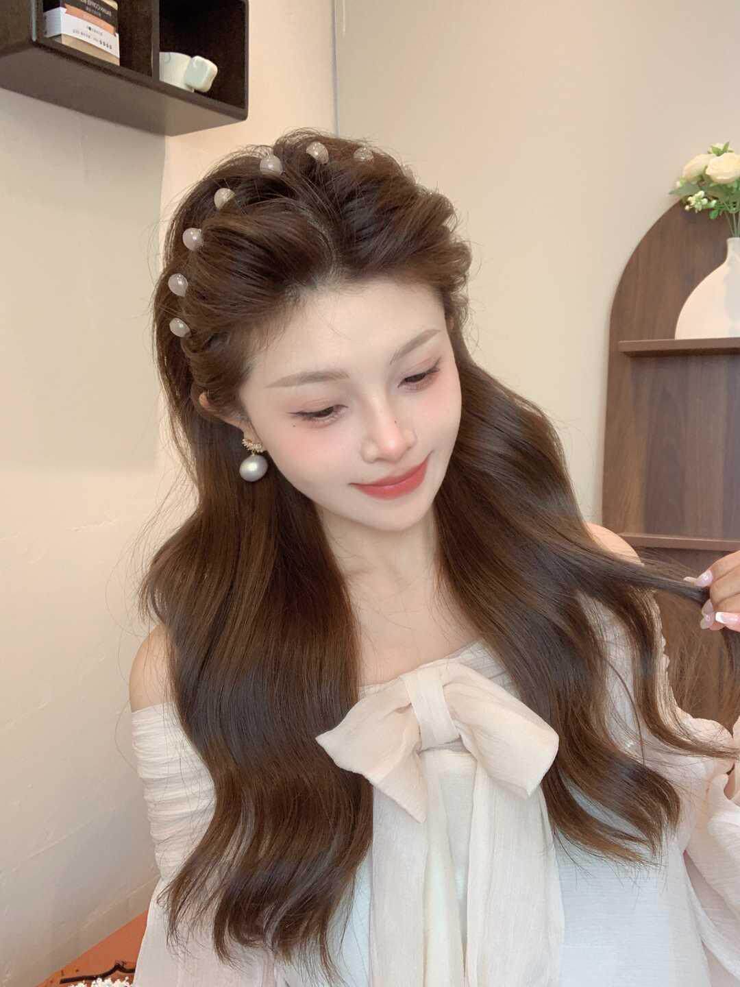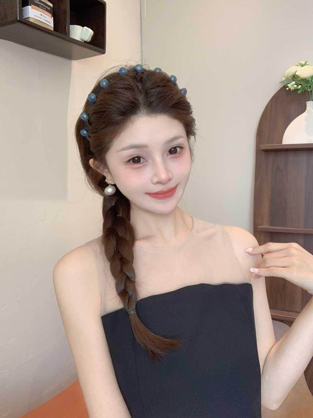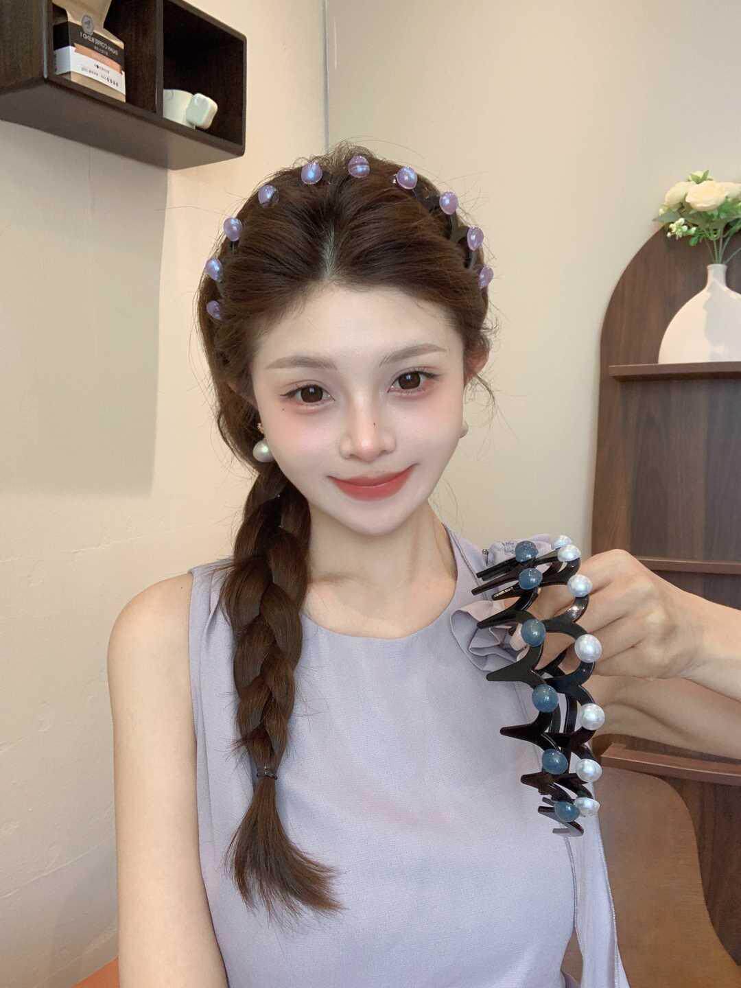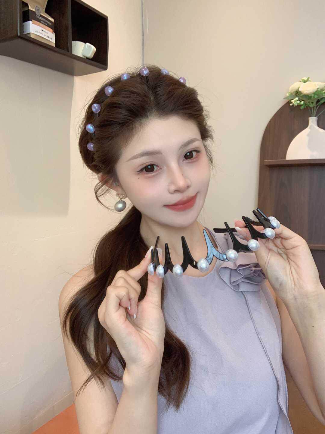 진주 웨이브 헤어 후프 여성의 2024 새로운 스타일 페이스 워시 푹신한 질감 칫솔질 빗 미끄럼 방지 헤드 후프 고급 센스 헤어 카드스토어 가기