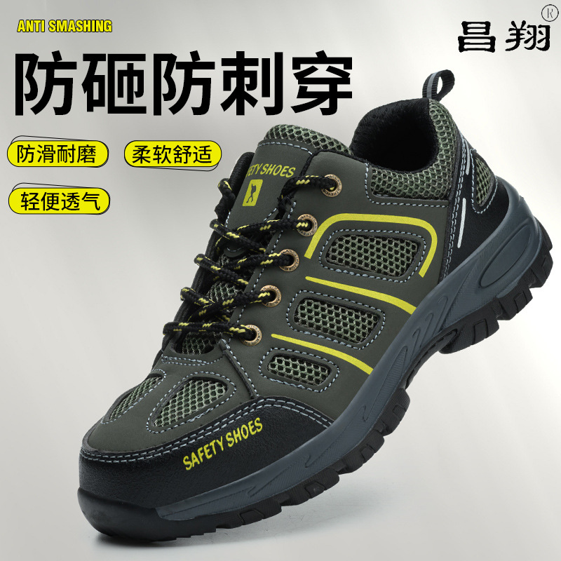 Changxiang 노동 보호 용품, 충격 방지 및 펑크 방지 안전화, 미끄럼 방지 통기성 작업화, 경량 내마모성 건설 현장 노동 보호 신발스토어 가기