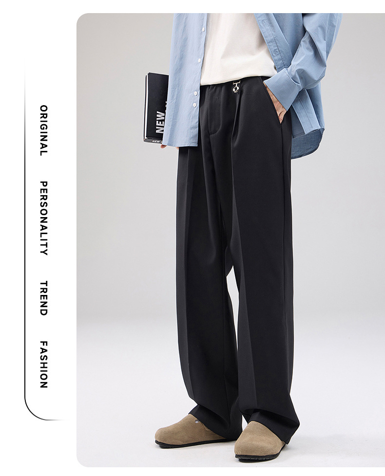 Muqiu 남자 착용 ∠ 미국 통근 캐주얼 바지 남자 올 매치 플러시 핸섬 느슨한 다리 바지스토어 가기