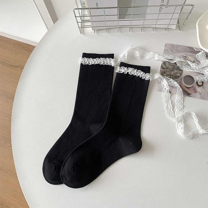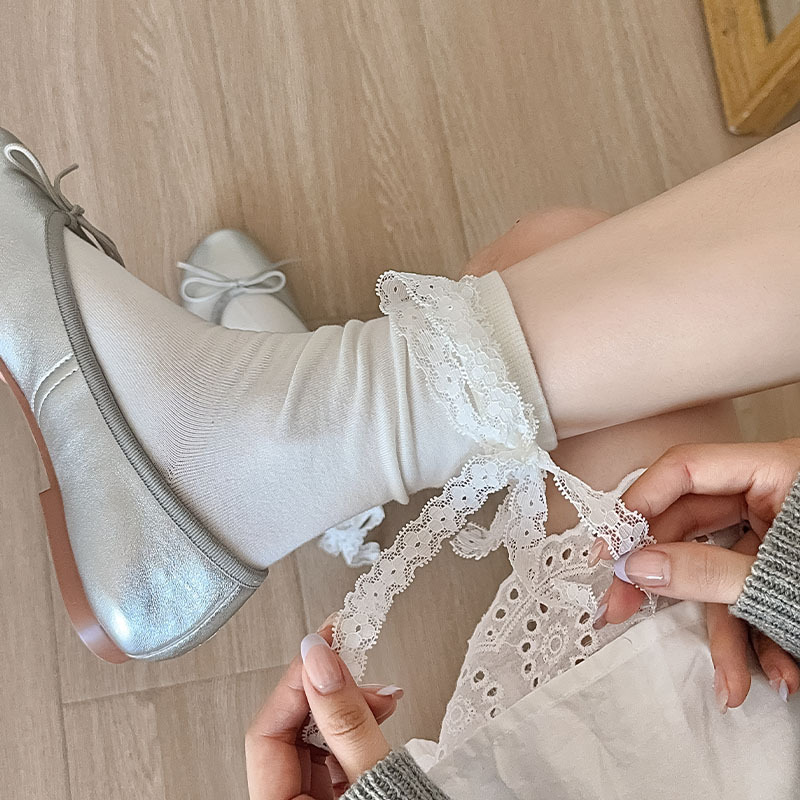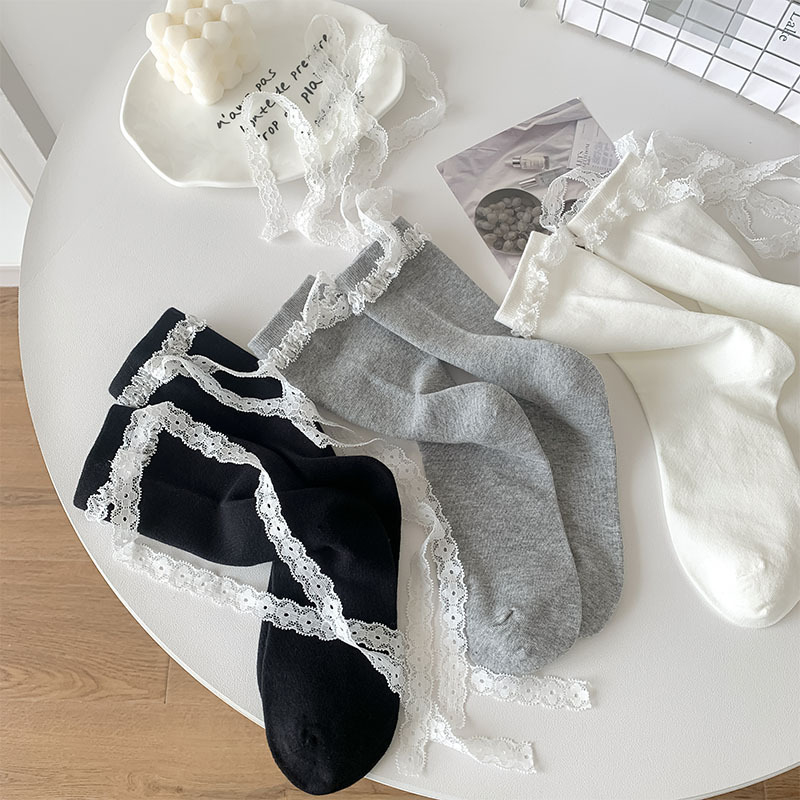 샤넬 스타일 달콤한 레이스 레이스 양말 어린이를위한 봄 가을 얇은 가죽 신발 흑백 그레이 스트랩 밥 양말스토어 가기