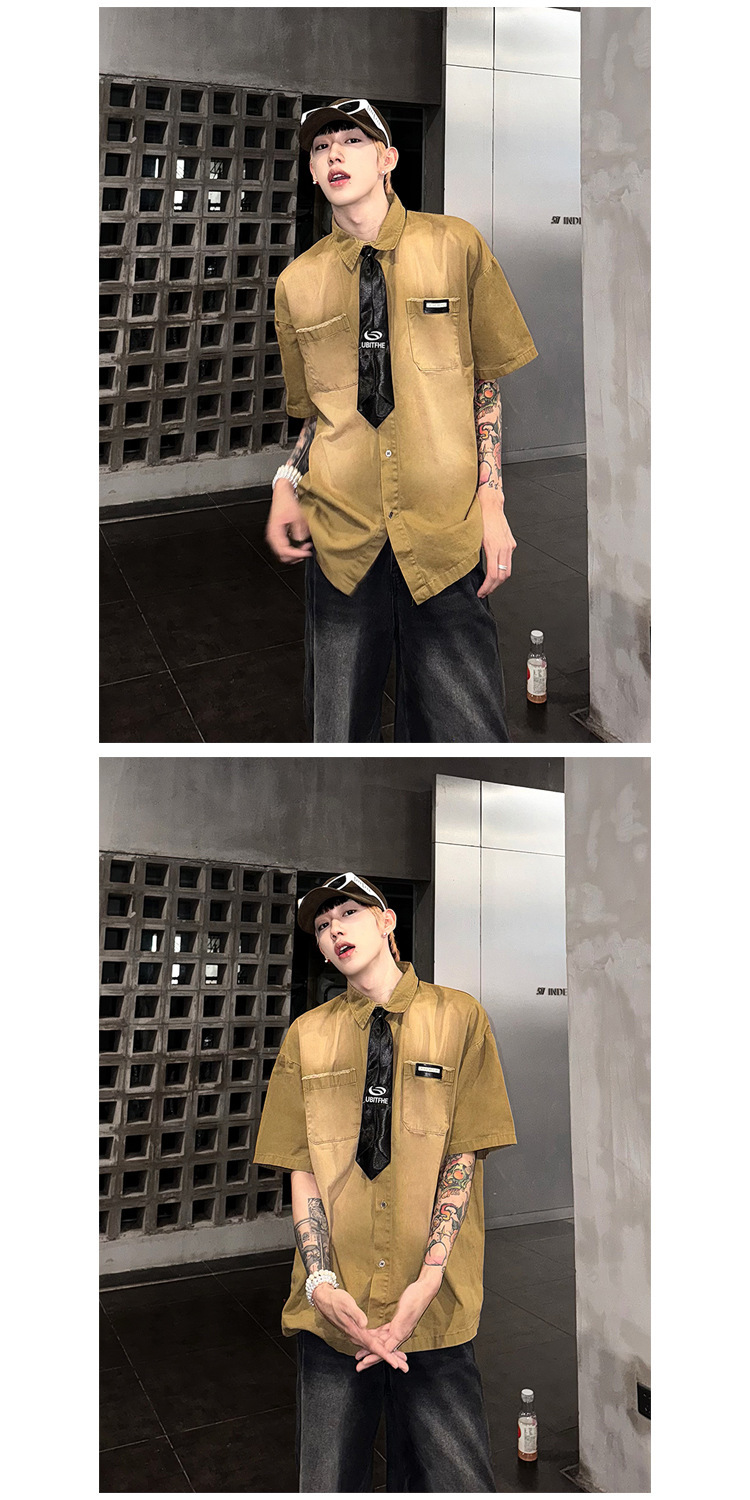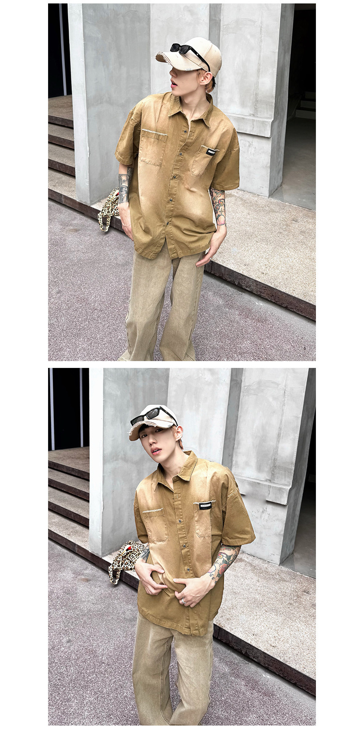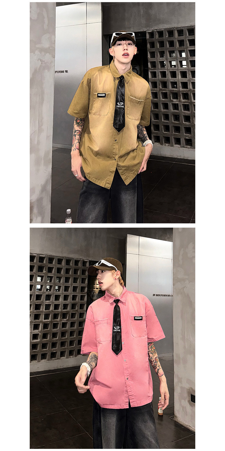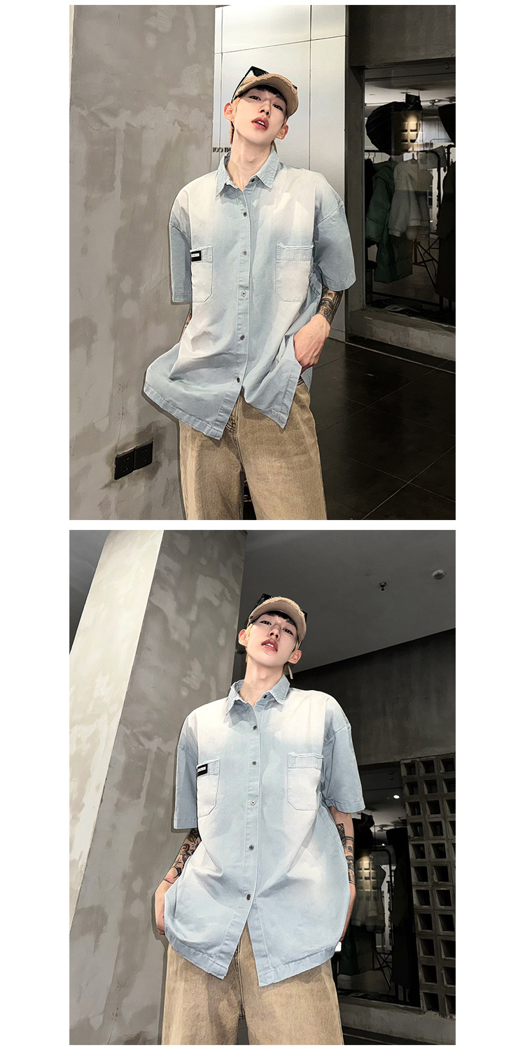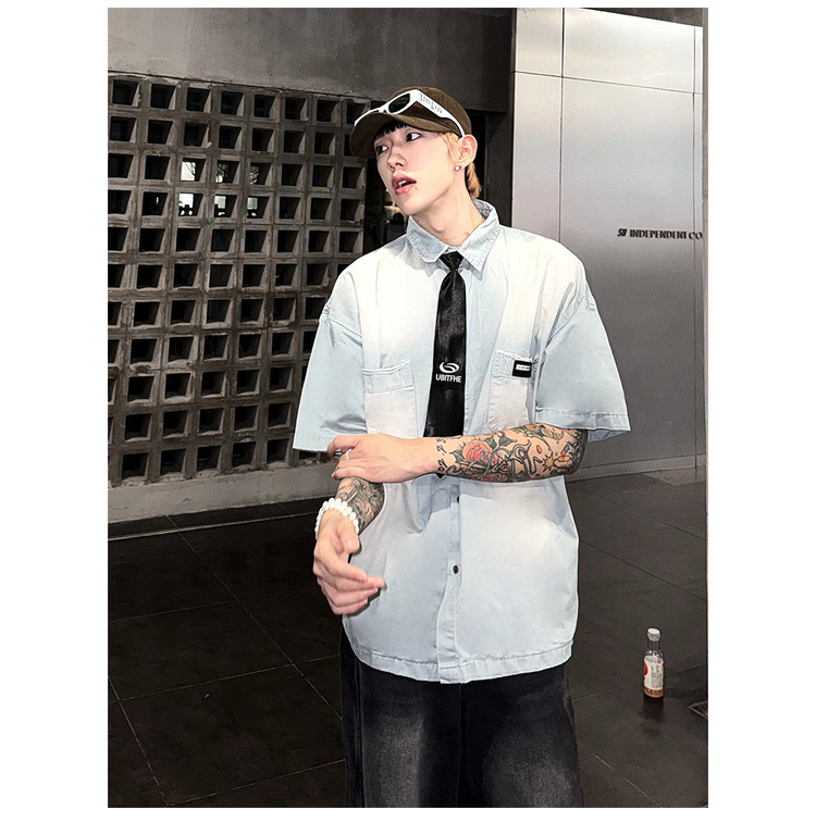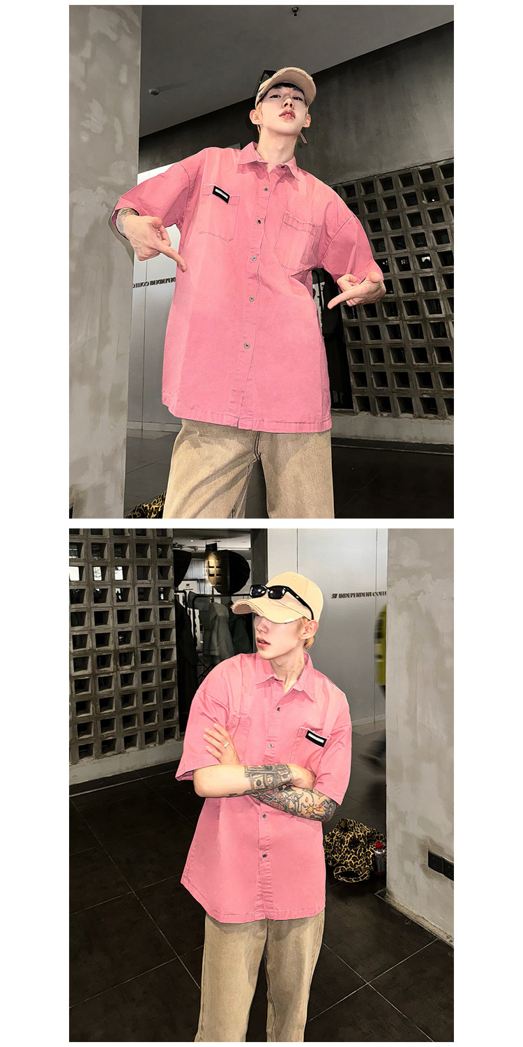 핑크 도파민 데님 셔츠 반팔 남자 여름 십대 착용 대학 스타일 반소매 커플 JK 셔츠스토어 가기