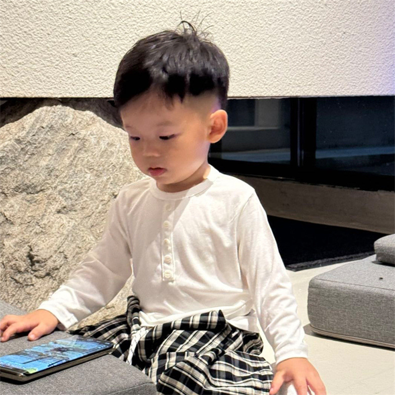 어린이 의류 가을 옷 소년 긴팔 티셔츠 2024 새로운 스타일 서양식 소년 소녀 솔리드 컬러 내베이스 셔츠 아동복