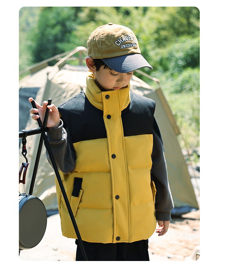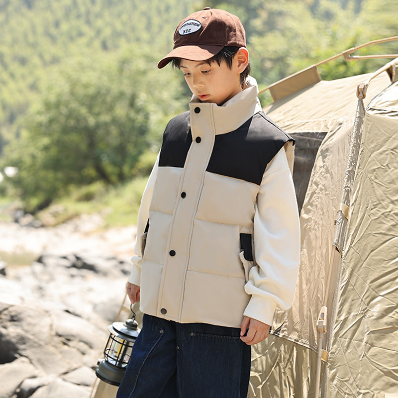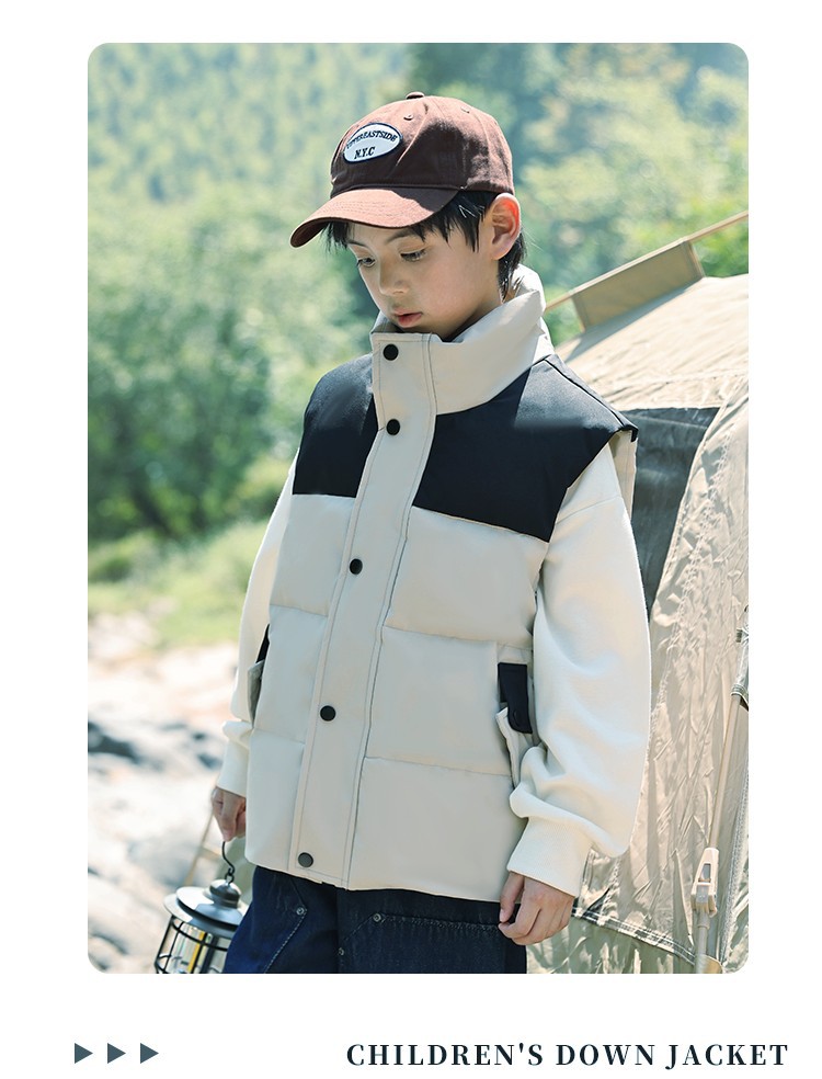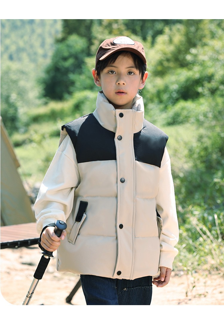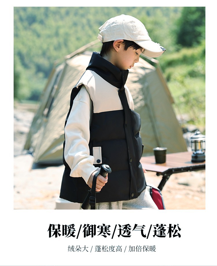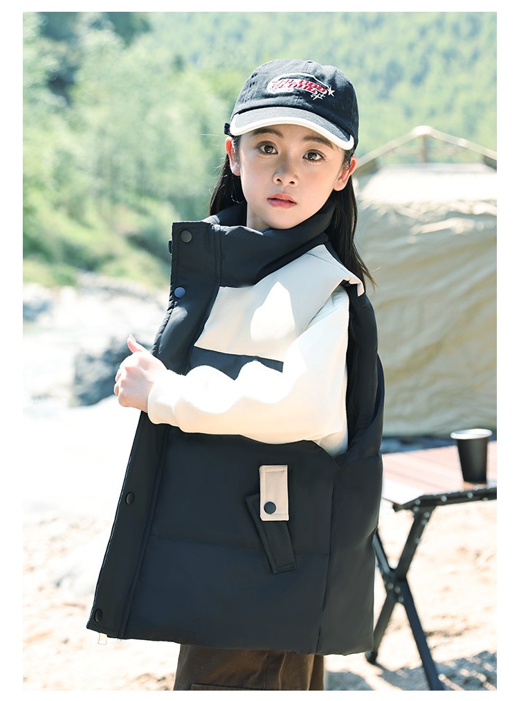 어린이 다운 조끼 큰 어린이 2024 년 새로운 가을과 겨울 아기 조끼 어깨 남자와 여자를위한 외장 두꺼운 자켓을 입고