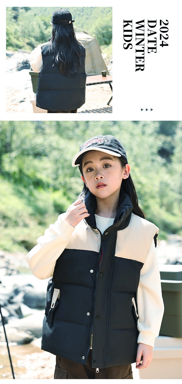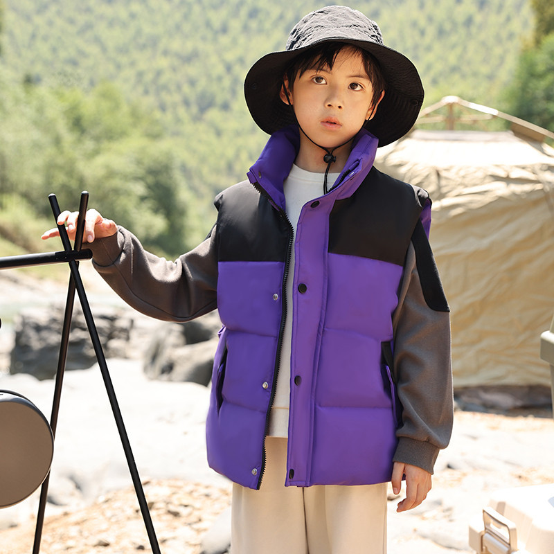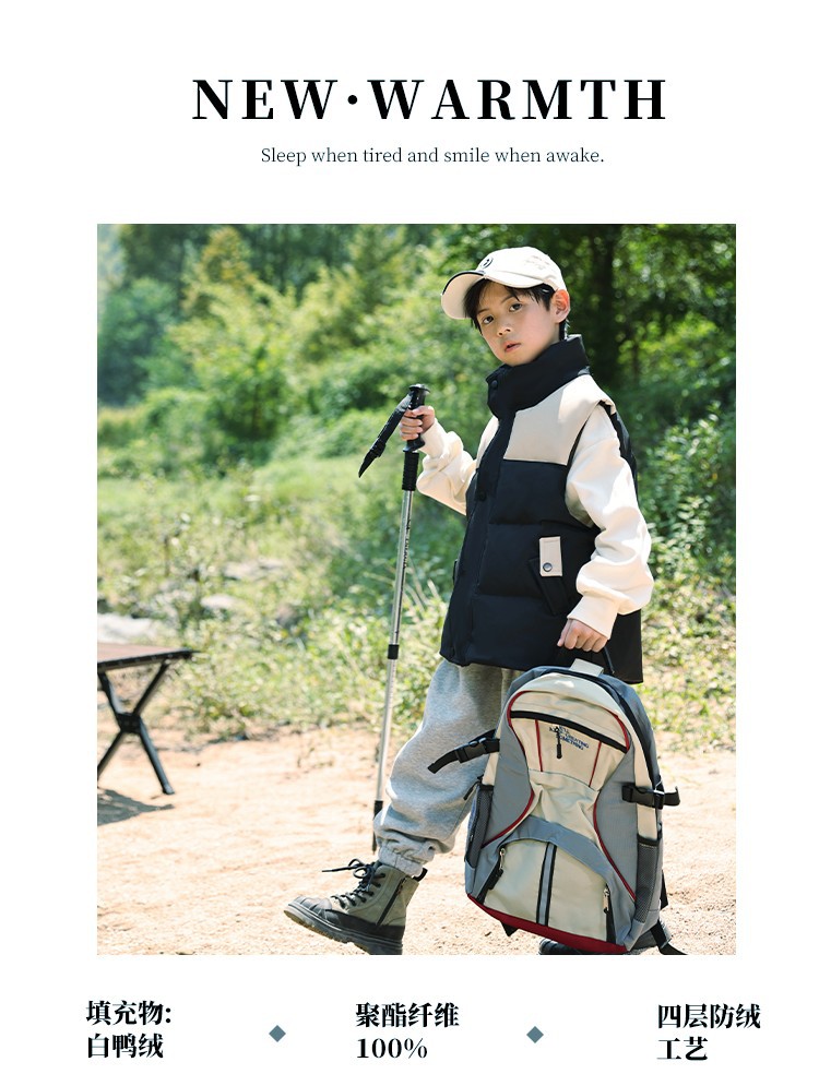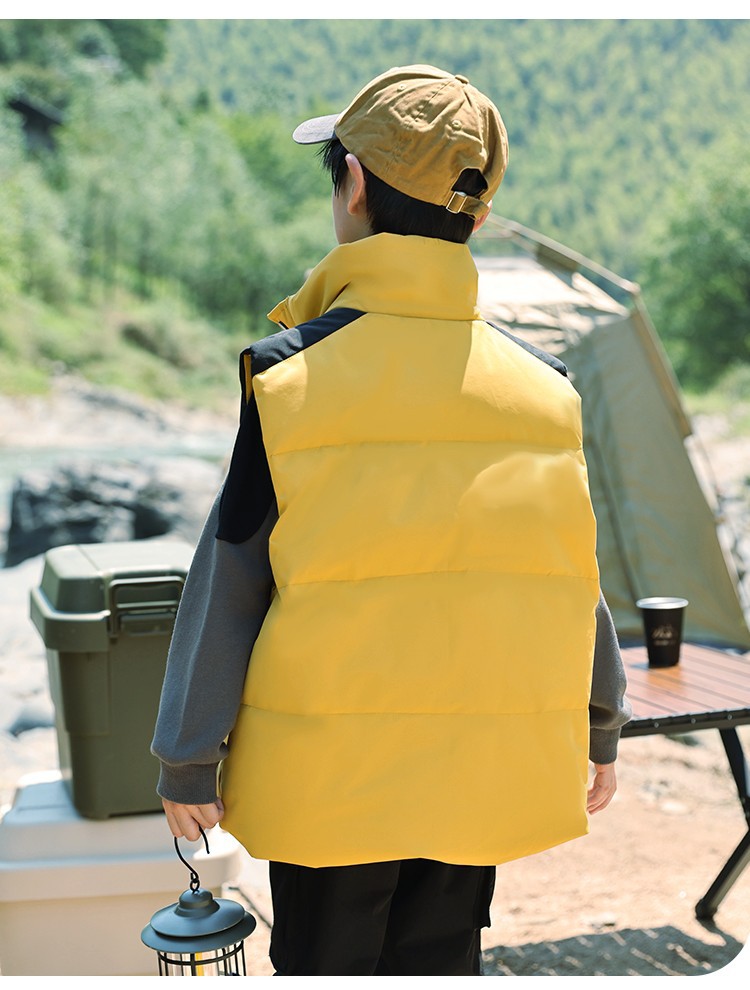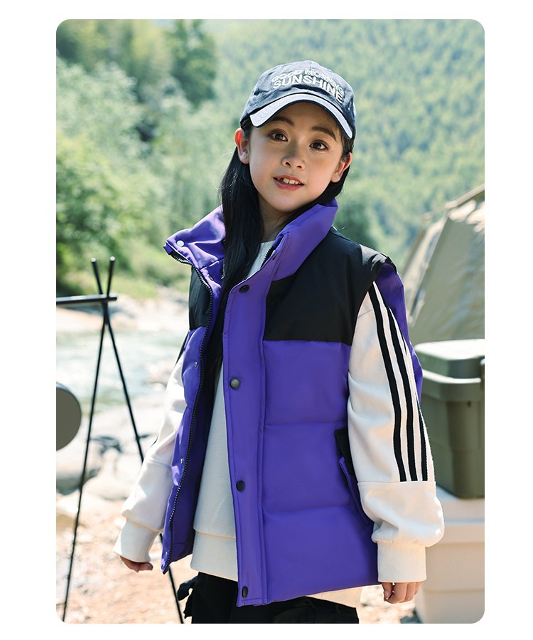 어린이 다운 조끼 큰 어린이 2024 년 새로운 가을과 겨울 아기 조끼 어깨 남자와 여자를위한 외장 두꺼운 자켓을 입고
