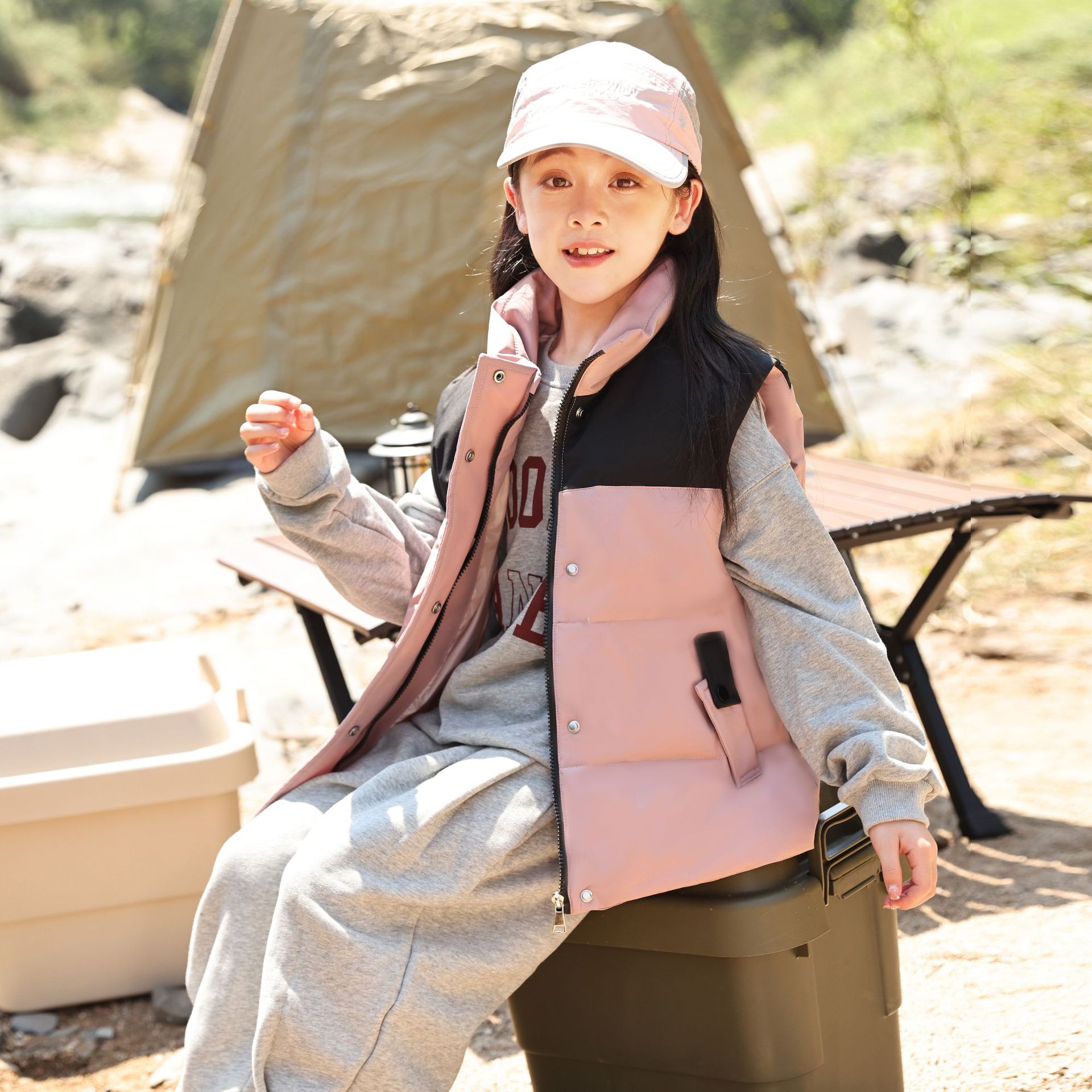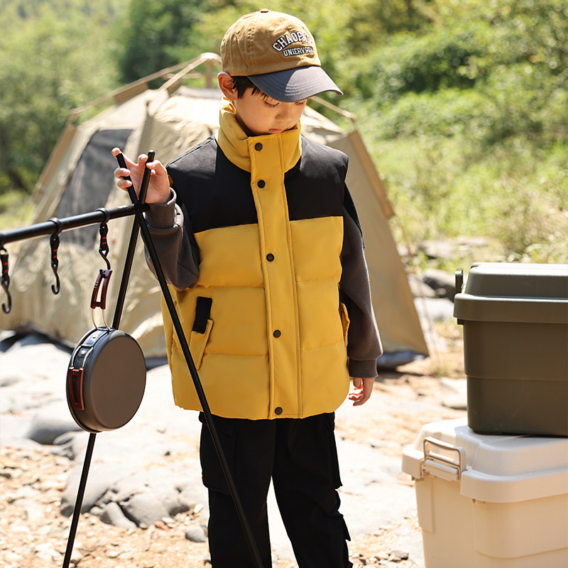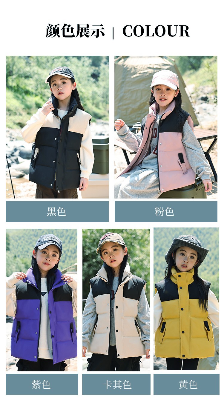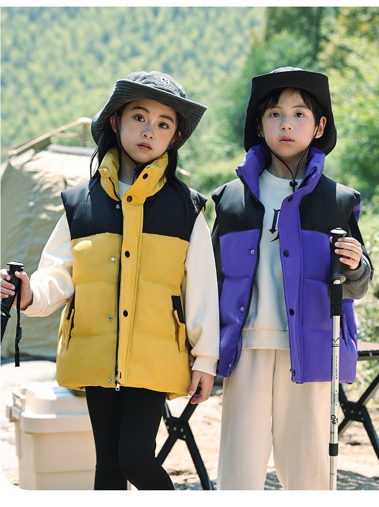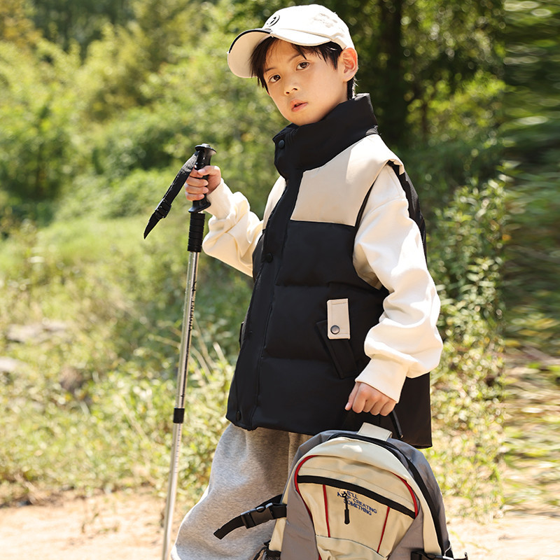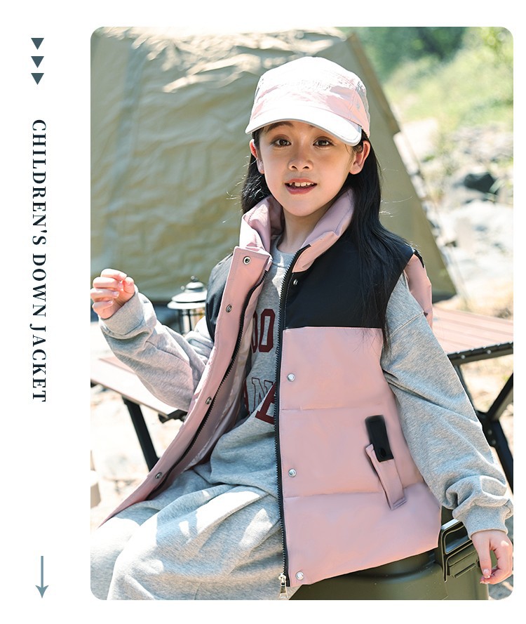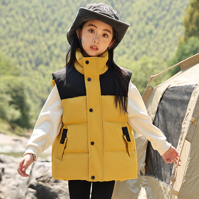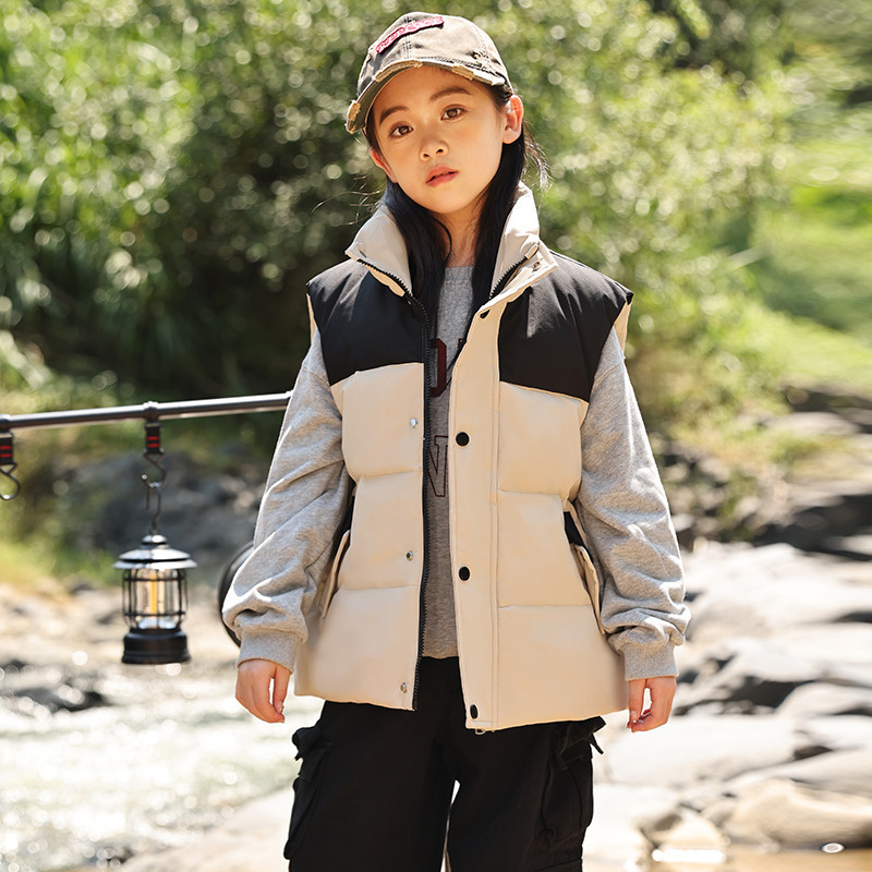 어린이 다운 조끼 큰 어린이 2024 년 새로운 가을과 겨울 아기 조끼 어깨 남자와 여자를위한 외장 두꺼운 자켓을 입고스토어 가기