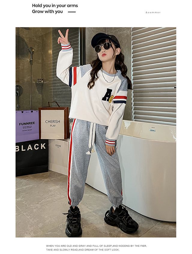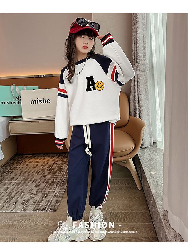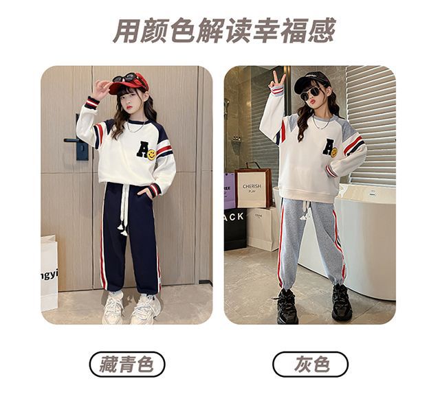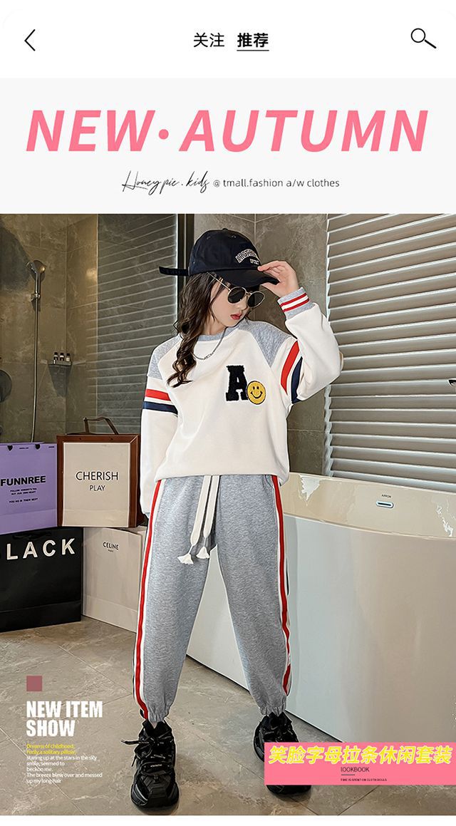 소녀의 가을 원피스 세트 2024 새로운 서양식 소녀 유행 어린이 인터넷 기념 봄 가을 스포츠 투피스 세트스토어 가기