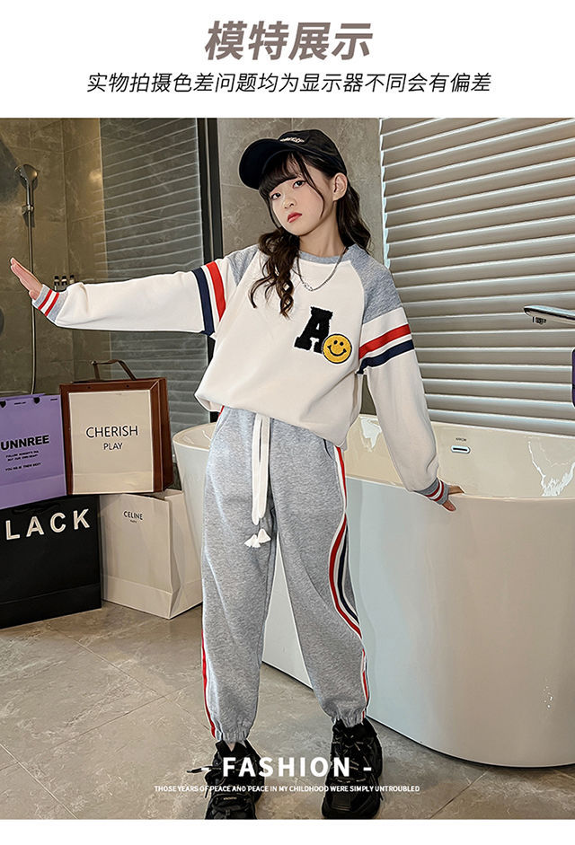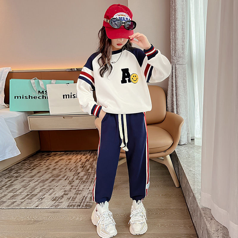 소녀의 가을 원피스 세트 2024 새로운 서양식 소녀 유행 어린이 인터넷 기념 봄 가을 스포츠 투피스 세트