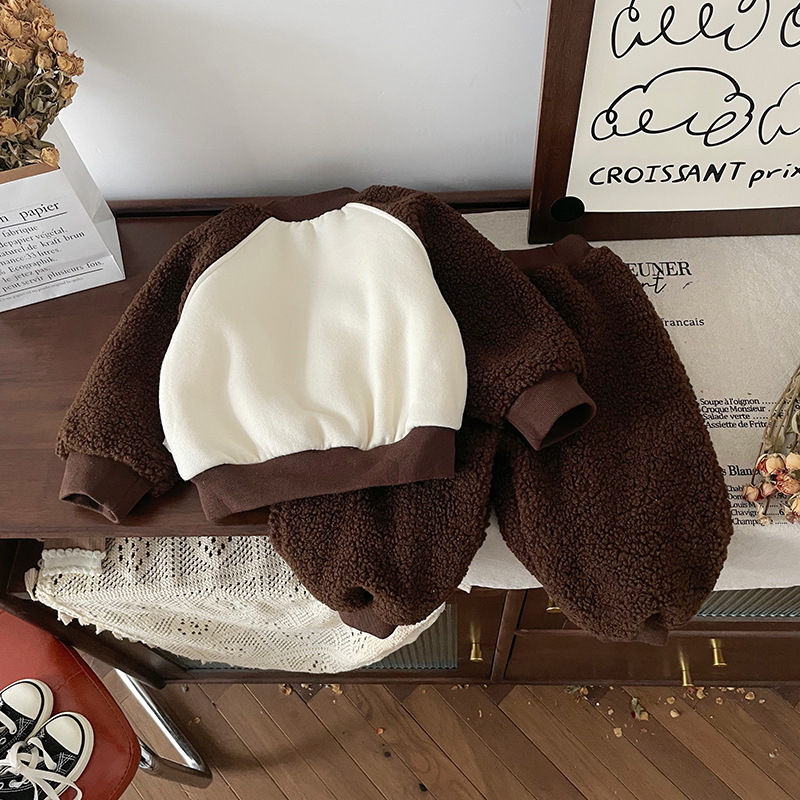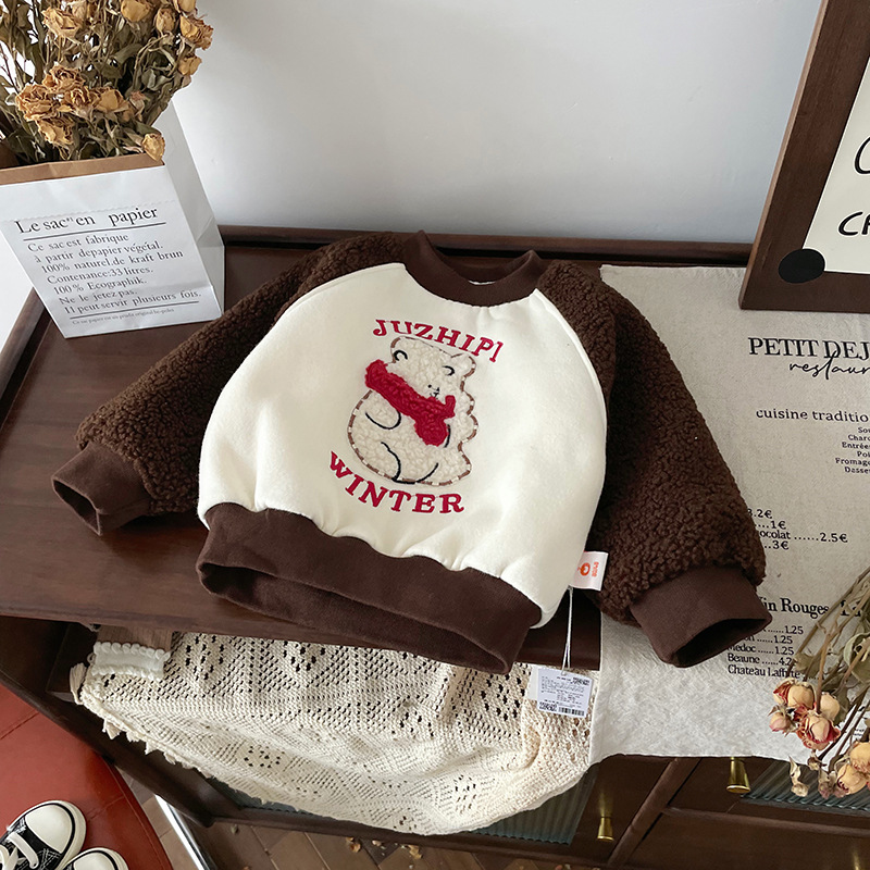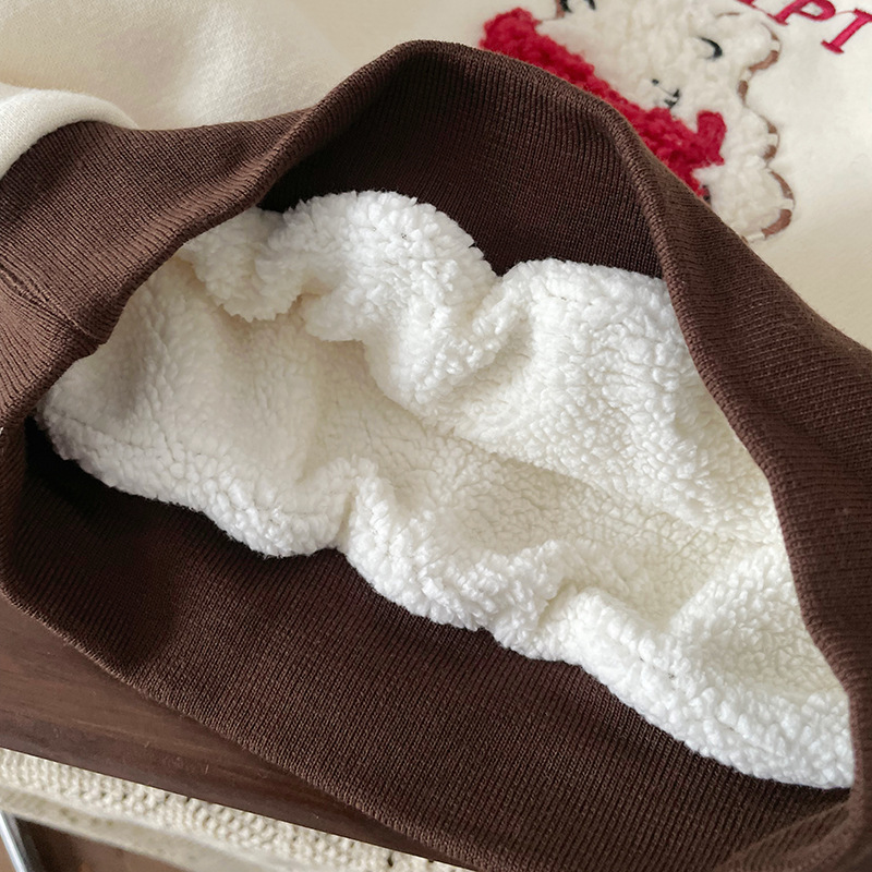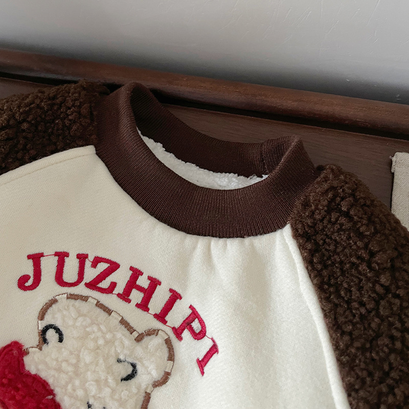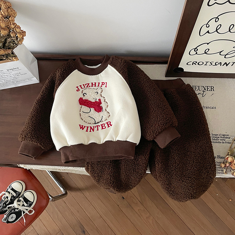 [재고] QT245635 어린이 벨벳 세트 2024 가을과 겨울 라글란 슬리브 컬러 매칭 만화 편지 곰