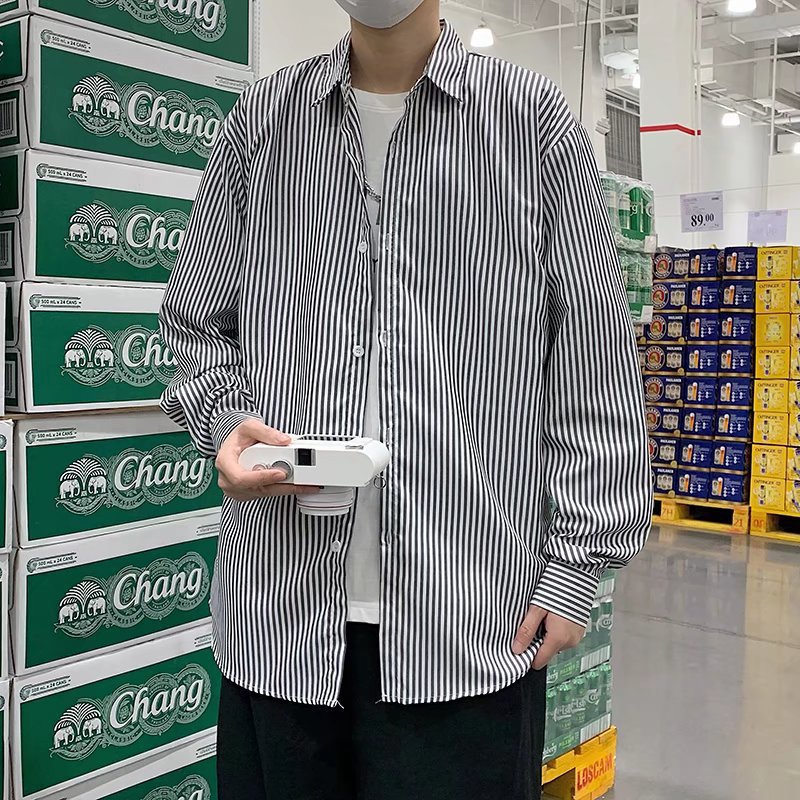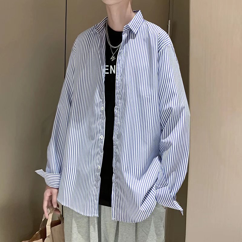 검은 줄무늬 셔츠 남자의 가을 새로운 홍콩 스타일 긴팔 셔츠 한국 스타일 유행 느슨한 캐주얼 재킷 탑 옷스토어 가기