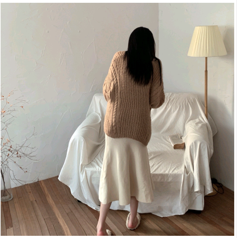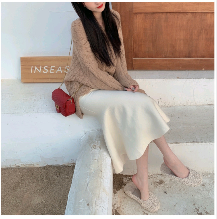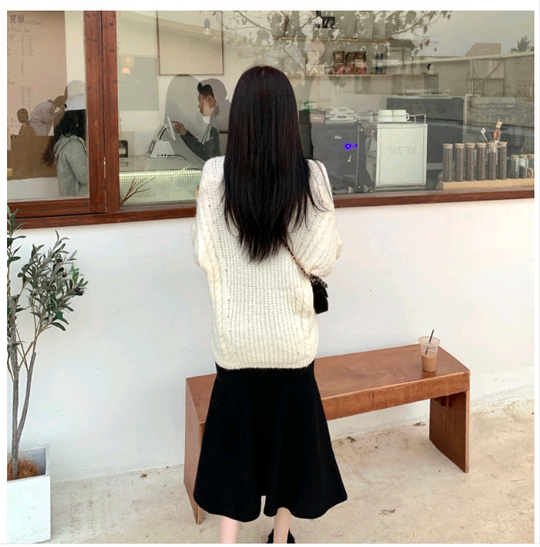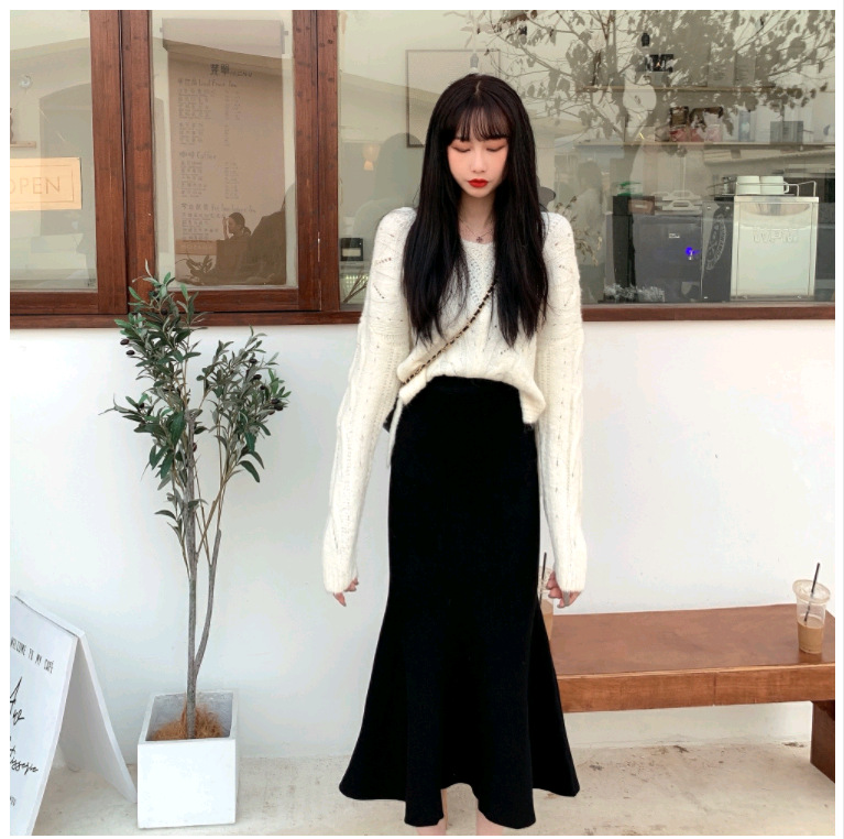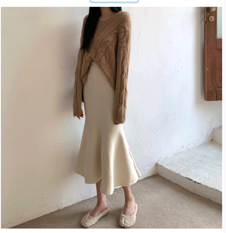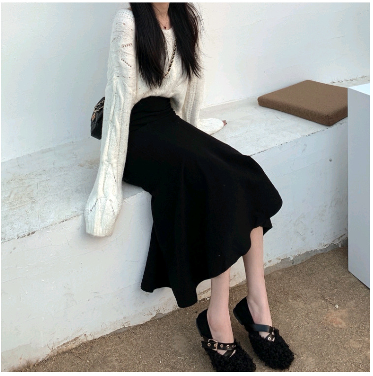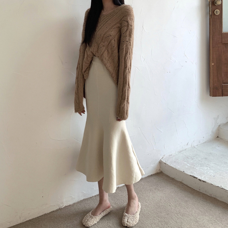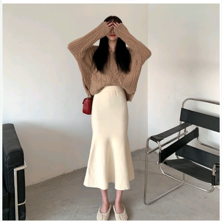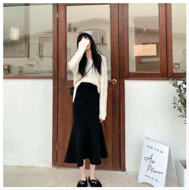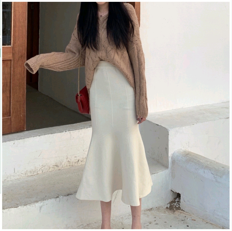 중간 길이의 엉덩이 니트 피쉬 스커트 여성 2024 가을 및 겨울 새로운 슬림 핏 슬리밍 홍콩 스타일 높은 허리 스커트스토어 가기