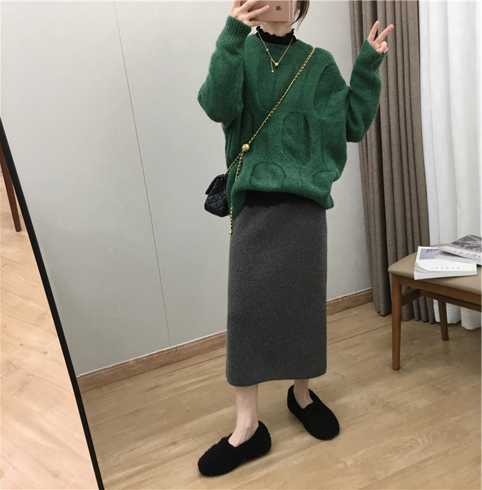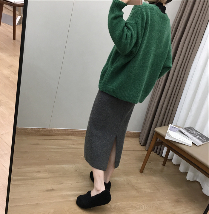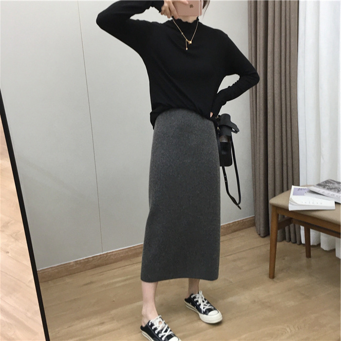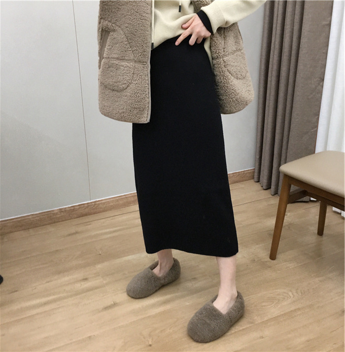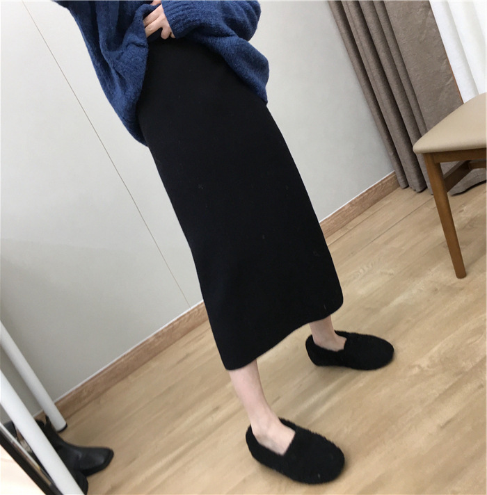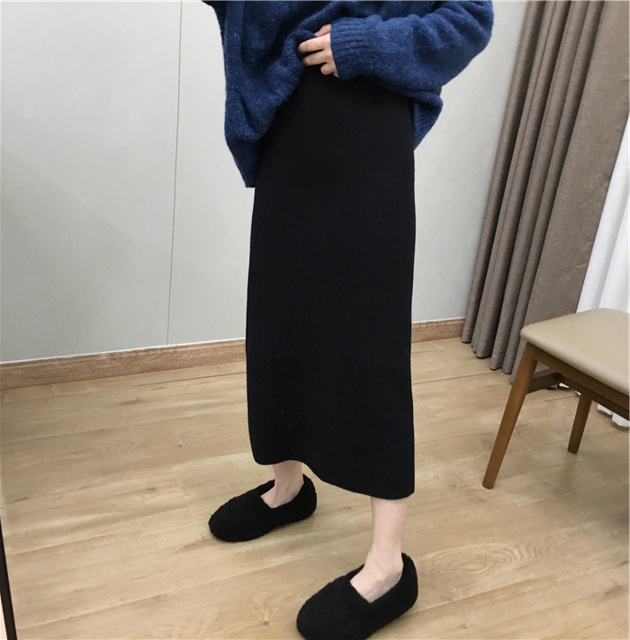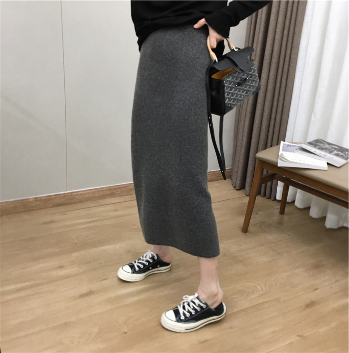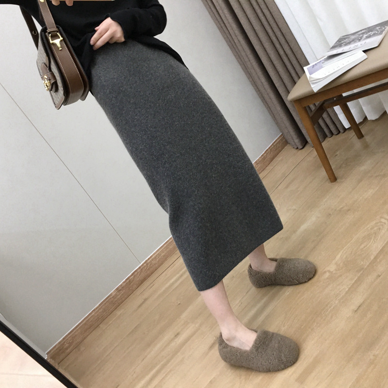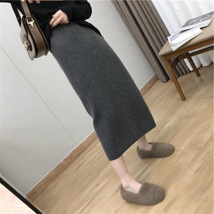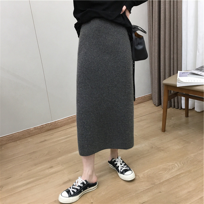 2024 가을과 겨울 새로운 한국식 하이웨이스트 올매치 니트 스플릿 힙합 스커트 한국식 슬리밍 모직 원스텝 스커트스토어 가기