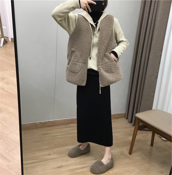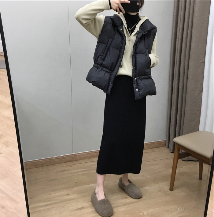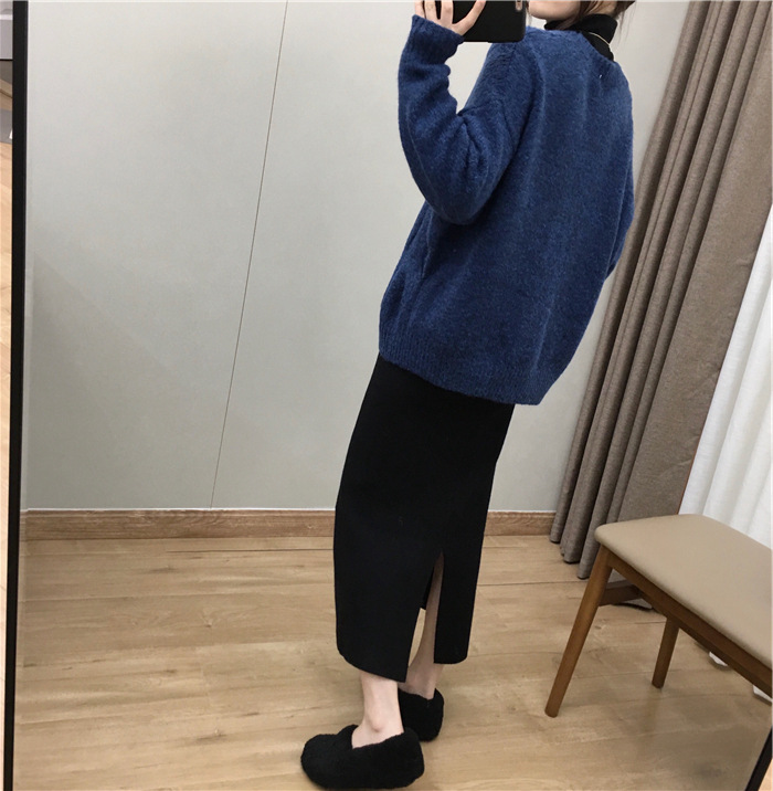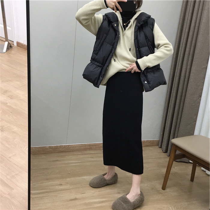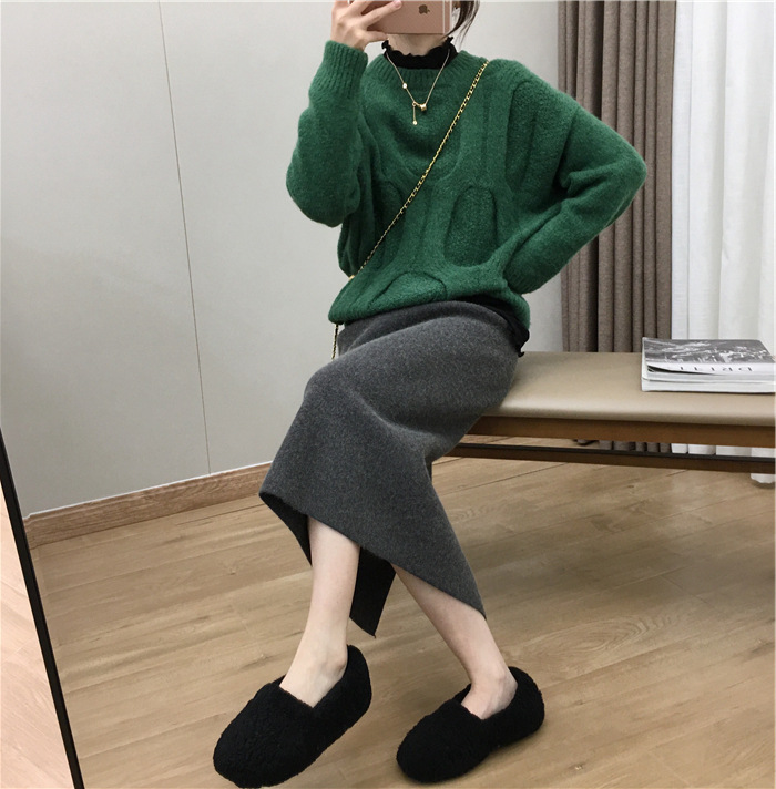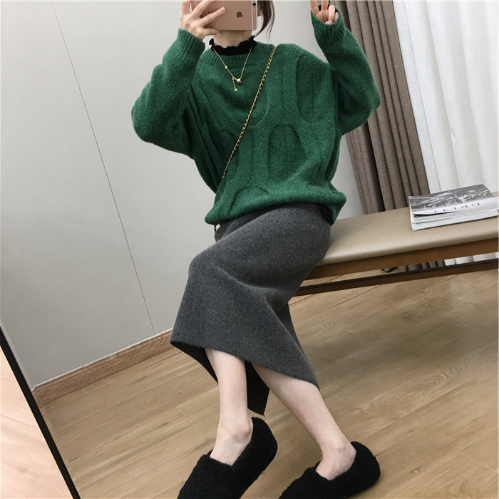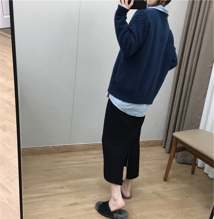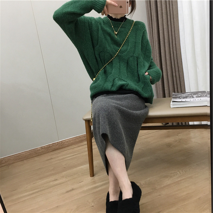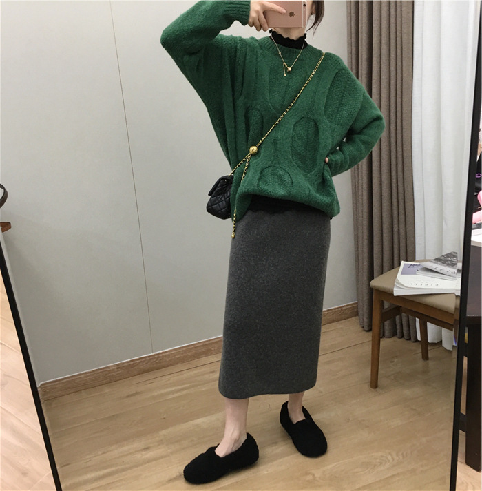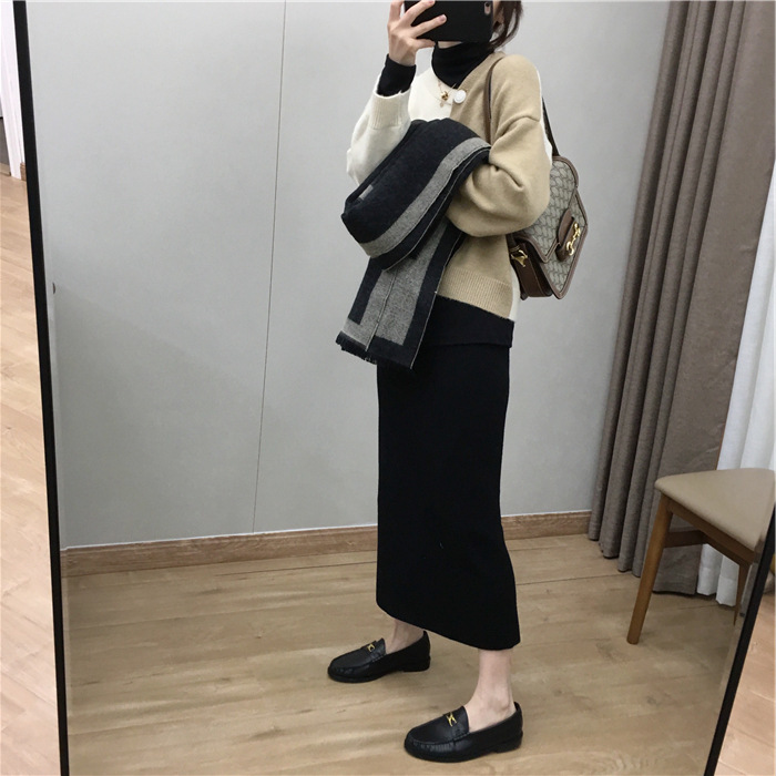 2024 가을과 겨울 새로운 한국식 하이웨이스트 올매치 니트 스플릿 힙합 스커트 한국식 슬리밍 모직 원스텝 스커트스토어 가기