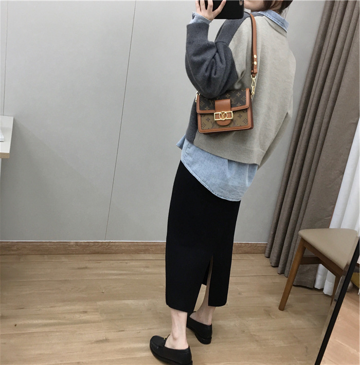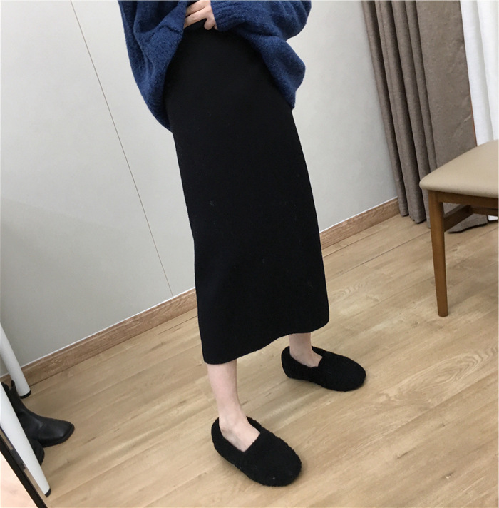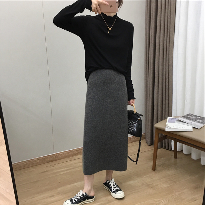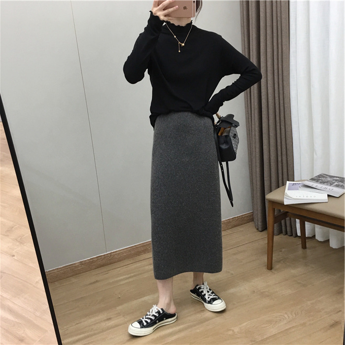 2024 가을과 겨울 새로운 한국식 하이웨이스트 올매치 니트 스플릿 힙합 스커트 한국식 슬리밍 모직 원스텝 스커트
