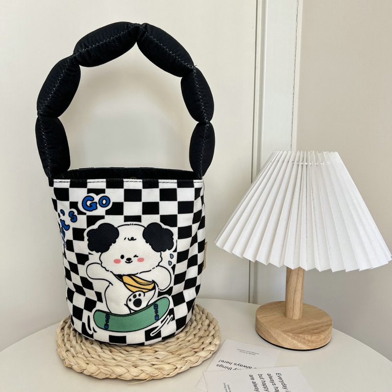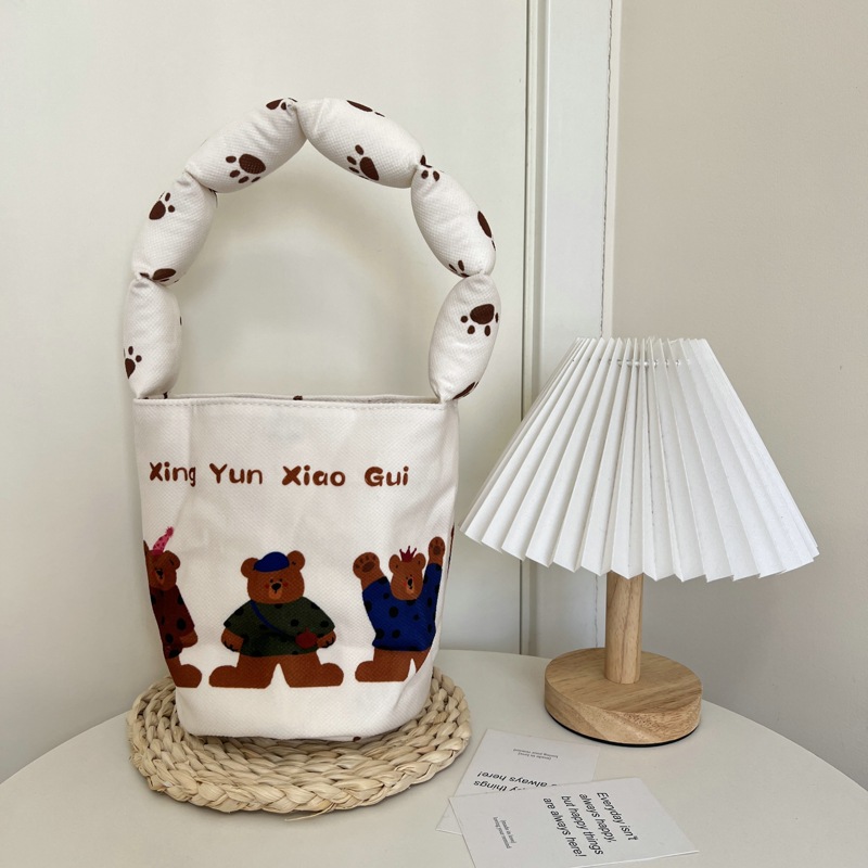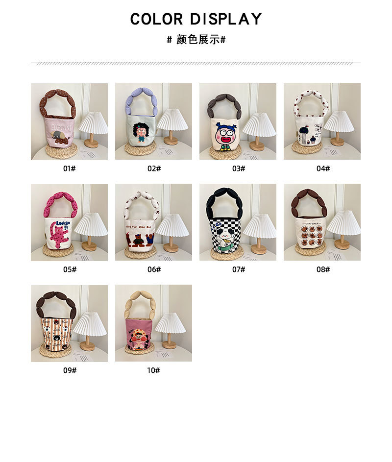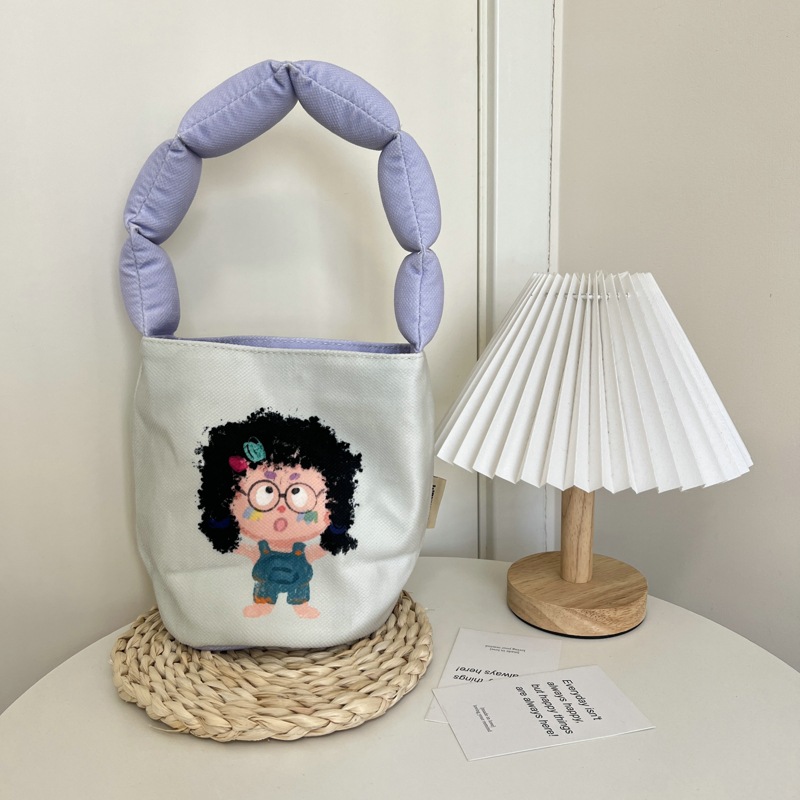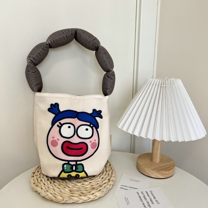 작은 광장 가방 여성 핸드백 일본과 한국식 휴대용 통근 만화 스웨이드 손 선물 언더암 가방 화장품 가방 버킷 가방스토어 가기