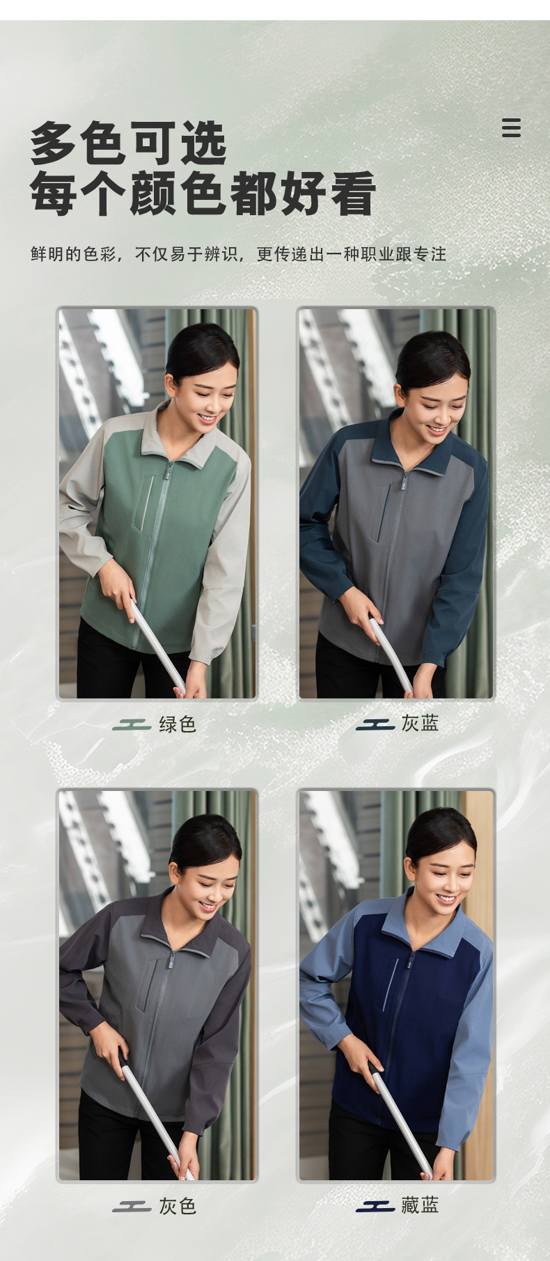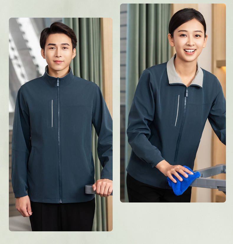 고급 호텔 청소 이모 작업복 옷깃 지퍼 가을과 겨울 긴 소매 룸 승무원 재산 청소 유니폼