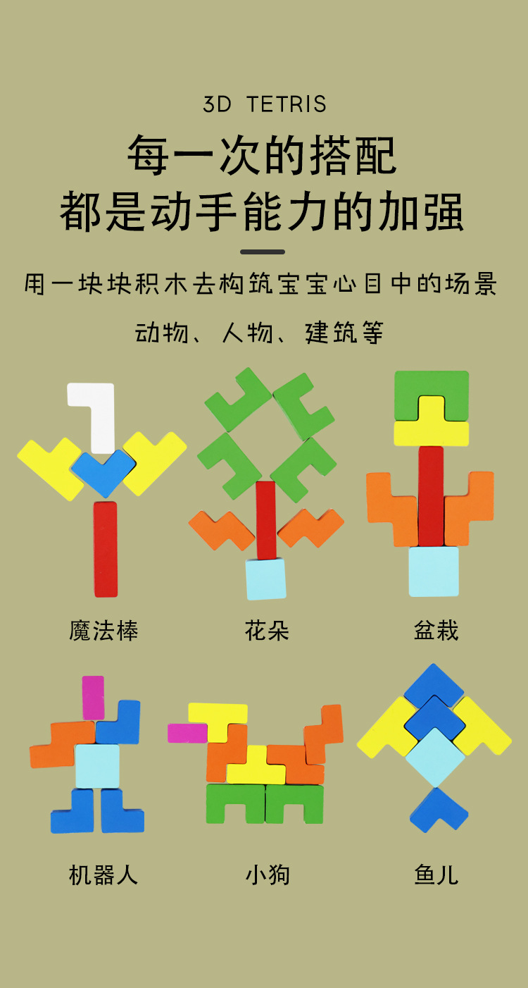 어린이 나무 유아 퍼즐 3D 테트리스 빌딩 블록 아기 논리 훈련 교육 장난감 부모-어린이스토어 가기